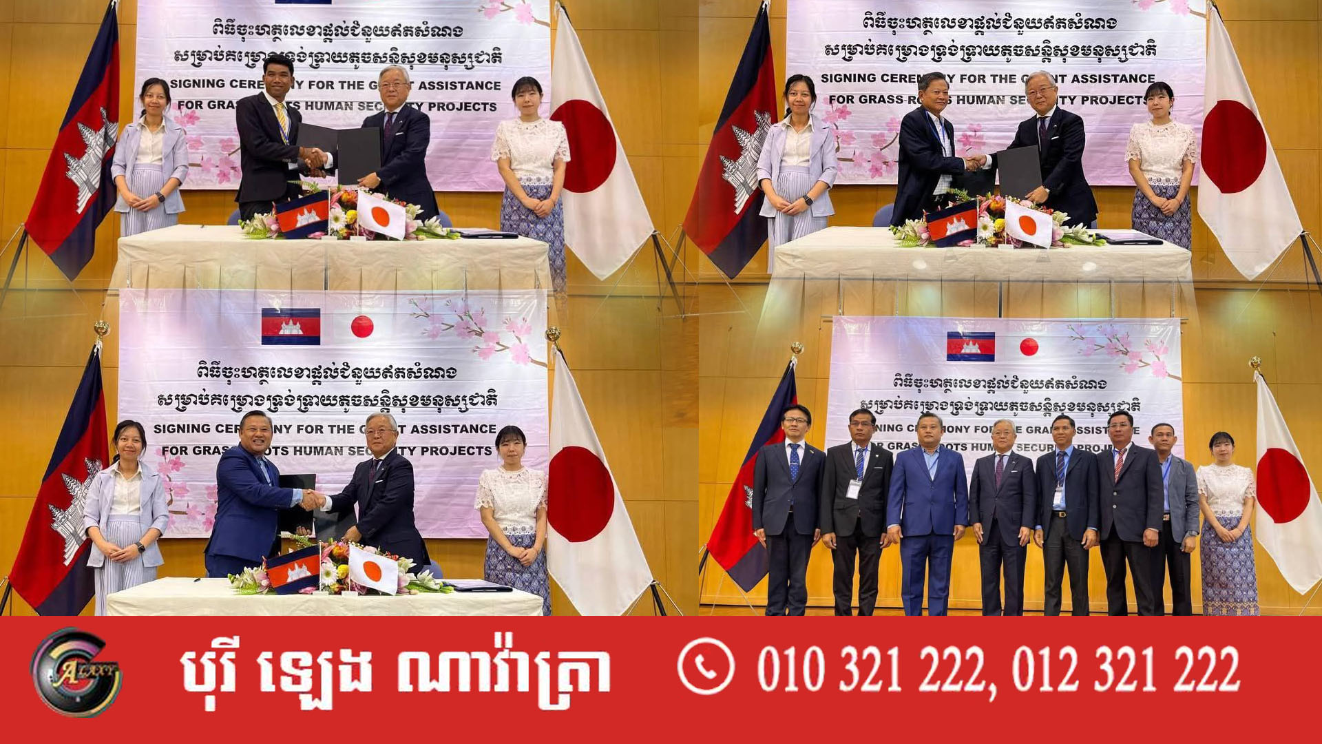 កិច្ចសន្យាផ្តល់ជំនួយ ត្រូវបានចុះហត្ថលេខា កាលថ្ងៃទី៣០ ខែមករា ឆ្នាំ២០២៥ ដោយលោក អ៊ូអិណុ អាត់ស៊ូស៊ី ឯកអគ្គរាជទូត វិសាមញ្ញ និងពេញសមត្ថភាពរបស់ប្រទេសជប៉ុន ប្រចាំកម្ពុជា និង តំណាងស្ថាប័នទទួលជំនួយទាំងបី ដើម្បីអនុវត្តគម្រោងចំនួន៣រួមមាន៖