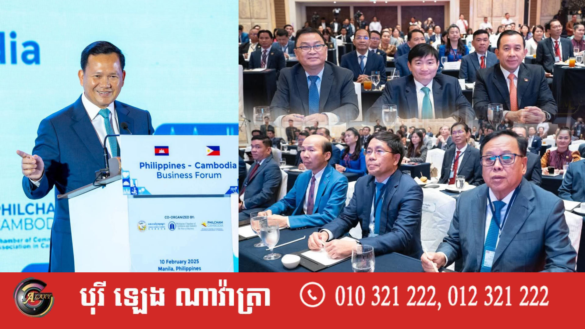 សូមជម្រាបជូនផងដែរថា “វេទិកាធុរកិច្ចកម្ពុជា-ហ្វីលីពីន” គឺជាព្រឹត្តិការណ៍អមនៃដំណើរទស្សនកិច្ចផ្លូវការរបស់ សម្តេចមហាបវរធិបតី ហ៊ុន ម៉ាណែត នាយករដ្ឋមន្ត្រីនៃព្រះរាជាណាចក្រកម្ពុជា និងលោកជំទាវបណ្ឌិត ពេជ ចន្ទមុន្នី ហ៊ុន ម៉ាណែត មកកាន់សាធារណរដ្ឋហ្វីលីពីន រយៈពេលពីរថ្ងៃគឺចាប់ពីថ្ងៃទី១០ ដល់១១ ខែកុម្ភៈ ឆ្នាំ២០២៥៕ អត្ថបទ៖ ហ្សាលីន