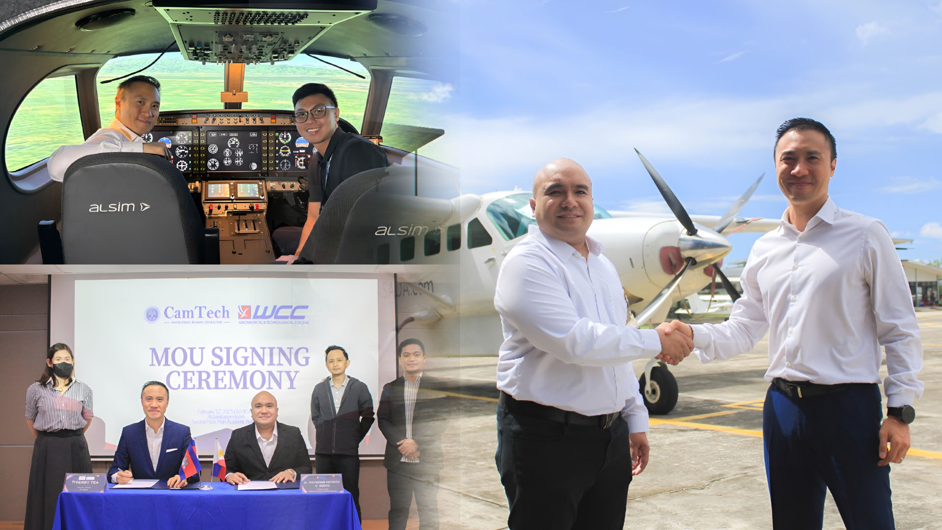 ខែ កុម្ភៈ ឆ្នាំ ២០២៥ ទីក្រុងម៉ានីល ប្រទេសហ្វីលីពីន៖ ក្នុងឱកាសនៃដំណើរទស្សនកិច្ចផ្លូវការរបស់នាយករដ្ឋមន្ត្រី ហ៊ុន ម៉ាណែត ទៅកាន់ទីក្រុងម៉ានីល សាកលវិទ្យាល័យ CamTech និង WCC Aeronautical and Technological College (WCC-ATC) បានចុះហត្ថលេខាលើអនុស្សរណៈនៃការយោគយល់គ្នា (MOU) ដើម្បីសហការគ្នាលើការអភិវឌ្ឍជំនាញអាកាសចរណ៍ជាមួយនឹងកម្មវិធីសិក្សាអាកាសចរណ៍នៅកម្ពុជា។