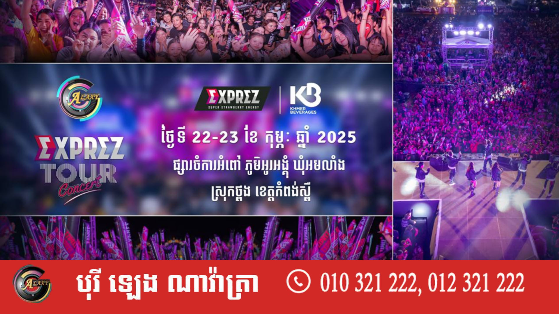 មហាព្រឹត្តិការណ៍ប្រគំតន្រ្តីប្រចាំប្រទេស Exprez Tour Concert របស់ ក្រុមហ៊ុនខ្មែរ ប៊ែវើរីជីស សហការជាមួយផលិតកម្មGalaxy Navatra បានធ្វើដំណើរមកដល់ឃុំអមលាំង ស្រុកថ្ពង ខេត្តកំពង់ស្ពឺហើយ។ ការប្រគំតន្ត្រីខ្នាតយក្សមួយនេះ នឹងនាំយកកំពូលតារាចម្រៀងល្បីៗជាច្រើនរូបមកអង្រួនឆាក បង្កើតទស្សនីយភាពដ៏អស្ចារ្យ បម្រើអារម្មណ៍ពុកម៉ែបងប្អូន អាចចូលរួមទទួលយកភាពសប្បាយរីករាយ និងរាំលេងកម្សាន្ត ជាមួយនឹង ចង្វាក់ភ្លេងគ្រប់ស្ទាយ៍ព្រមទាំងបានជួបជាមួយអាយដលជាច្រើនដួងផងដែរ ។