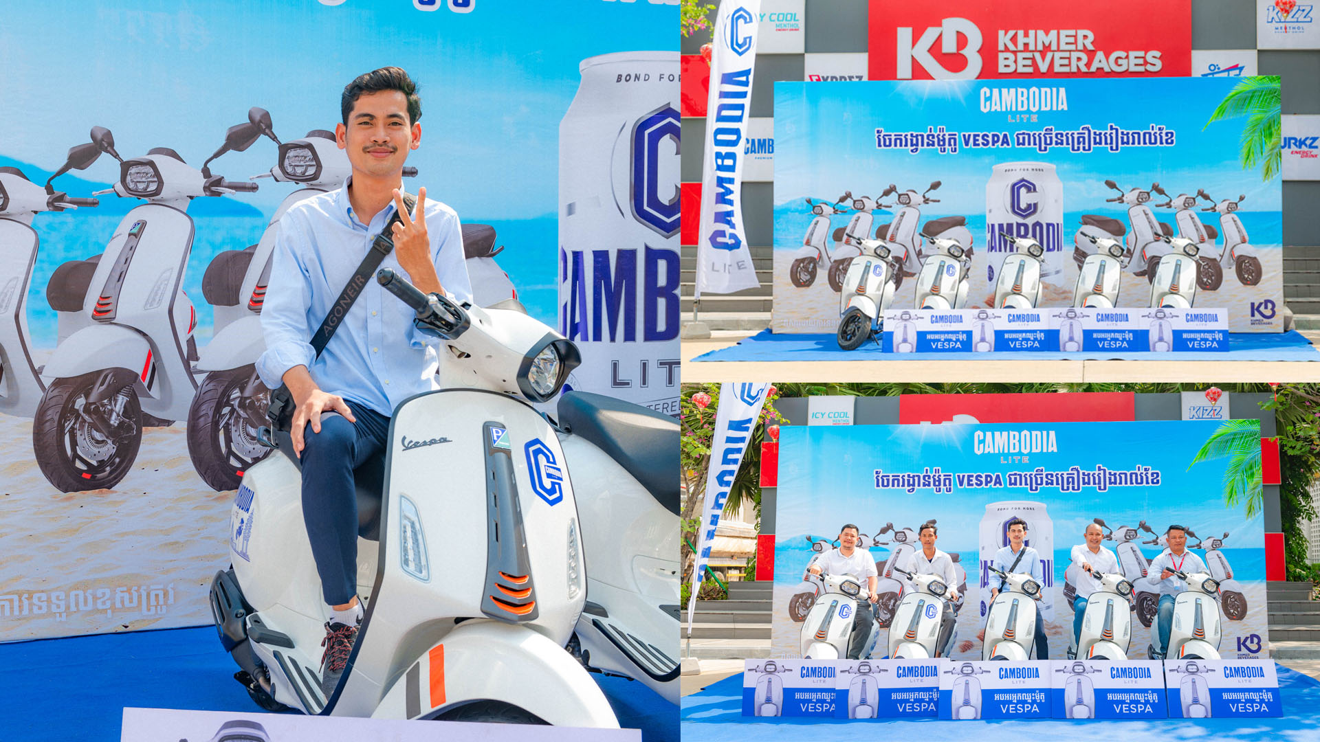 ភ្នំពេញ៖ បើកឆាកដើមឆ្នាំ ២០២៥ ខែមករា អតិថិជនមហាសំណាងចំនួន ៥ រូប ទទួលលាភសំណាងពី CAMBODIA LITE ចែកម៉ូតូ VESPA Spring S150 ចំនួន ៥ គ្រឿងតែម្ដង។ អ្នកណាក៏ល្បីថា គាស់ឈ្នះពិតៗពី CAMBODIA LITE ដែរ ហើយជារៀងរាល់ខែក្រុមហ៊ុន ខ្មែរ ប៊ែវើរីជីស តែងតែមានរង្វាន់សូបប្រាយដល់អតិថិជនជានិច្ច។