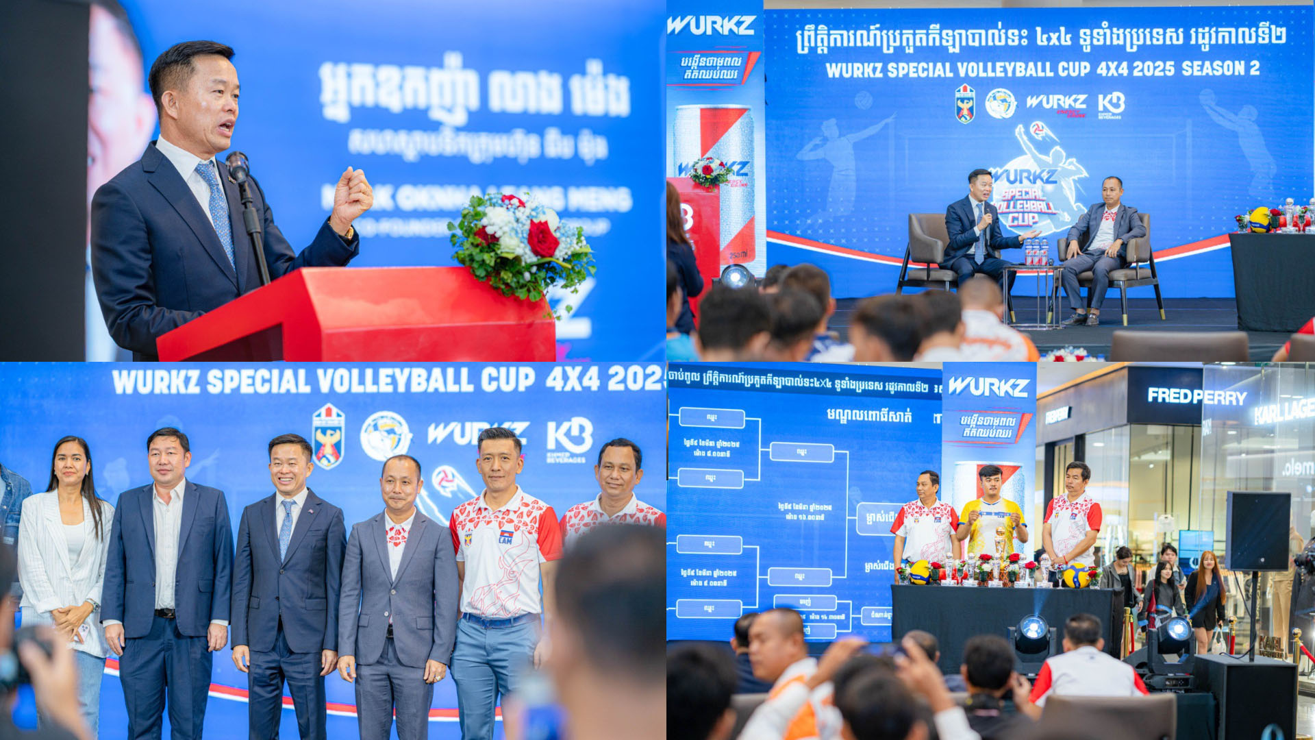(ភ្នំពេញ)៖ ត្រឡប់មកវិញជាមួយរដូវកាលទី ២ ក្នុងឆ្នាំ ២០២៥ ព្រឹត្តិការណ៍ប្រកួតបាល់ទះដ៏ធំទូទាំងប្រទេស WURKZ SPECIAL VOLLEYBALL CUP 4×4 បានធ្វើសន្និសិទសារព័ត៌មានកាលពីថ្ងៃទី ០១ ខែមីនា កន្លងទៅ ដោយបង្ហាញឲ្យឃើញពីឆន្ទៈគាំទ្រ លើកស្ទួយវិស័យកីឡាបាល់ទះរបស់ក្រុមហ៊ុន ខ្មែរ ប៊ែវើរីជីស និងការរួមសហការគ្នាសារជាថ្មីជាមួយនឹងសហព័ទ្ធកីឡាបាល់ទះកម្ពុជា។