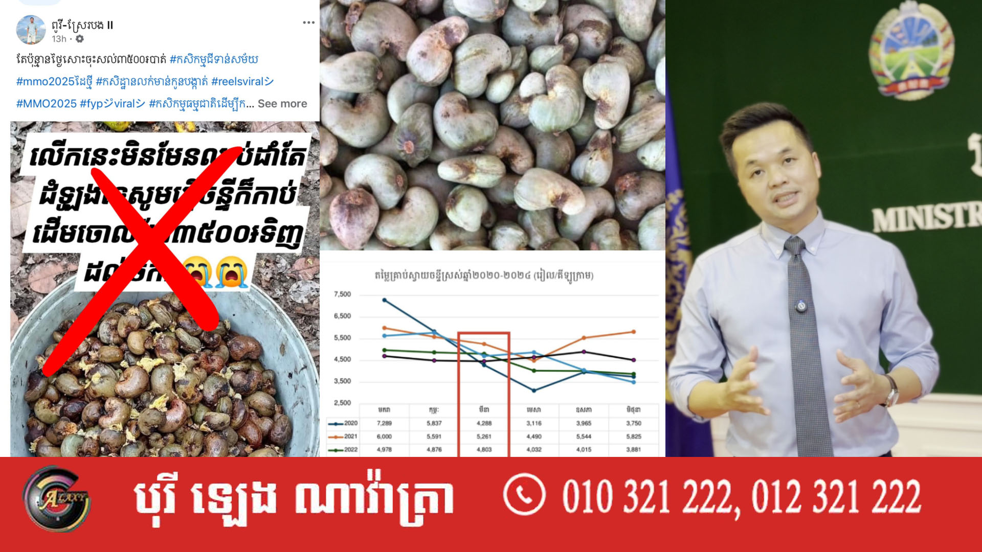 លោកលើកឡើងបែបនេះ របស់អ្នកនាំពាក្យខាងលើ គឺដើម្បីឆ្លើយតបនឹងព័ត៌មានមួយចំនួនតូច ដែលជាក្រុមMMO ដោយផ្សាយព័ត៌មានពាក់ព័ន្ធនឹងតម្លៃគ្រាប់ស្វាយចន្ទីបច្ចុប្បន្ន ដែលផ្សព្វផ្សាយមិនគ្រប់ជ្រោយធ្វើឱ្យមានការភ្ញាក់ផ្អើល ភ័ន្តច្រឡំដល់កសិករ។