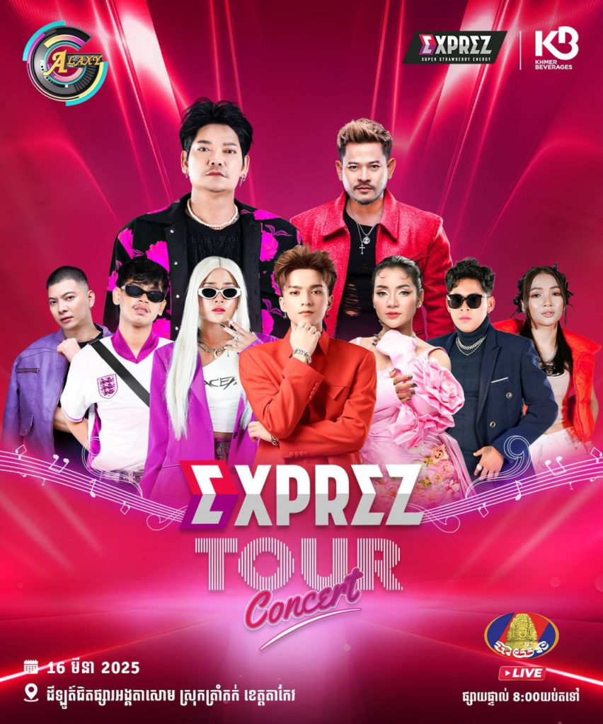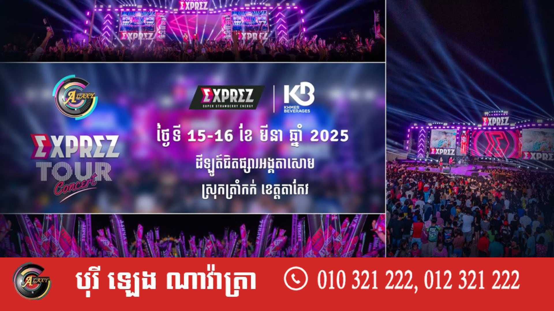 ឥឡូវដល់វេនអ្នកអង្គតាសោម ត្រាំកក់ហើយ មហាព្រឹត្តិការណ៍ប្រគំតន្រ្តីប្រចាំប្រទេស Exprez Tour Concert របស់ក្រុមហ៊ុនខ្មែរ ប៊ែវើរីជីស សហការជាមួយផលិតកម្ម Galaxy Navatra ដែលនឹងនាំយកកំពូលតារាចម្រៀងប្រចាំប្រទេសជាច្រើនដួង មកអង្រួនឆាក បង្កើតទស្សនីយភាពដ៏អស្ចារ្យ បម្រើអារម្មណ៍ពុកម៉ែបងប្អូន អាចចូលរួមទទួលយកភាពសប្បាយរីករាយ និងរាំលេងកម្សាន្តជាមួយនឹងចង្វាក់ភ្លេងគ្រប់ស្ទាយ៍ ព្រមទាំងបានជួបជាមួយអាយដលជាច្រើនដួងទៀតផង។
