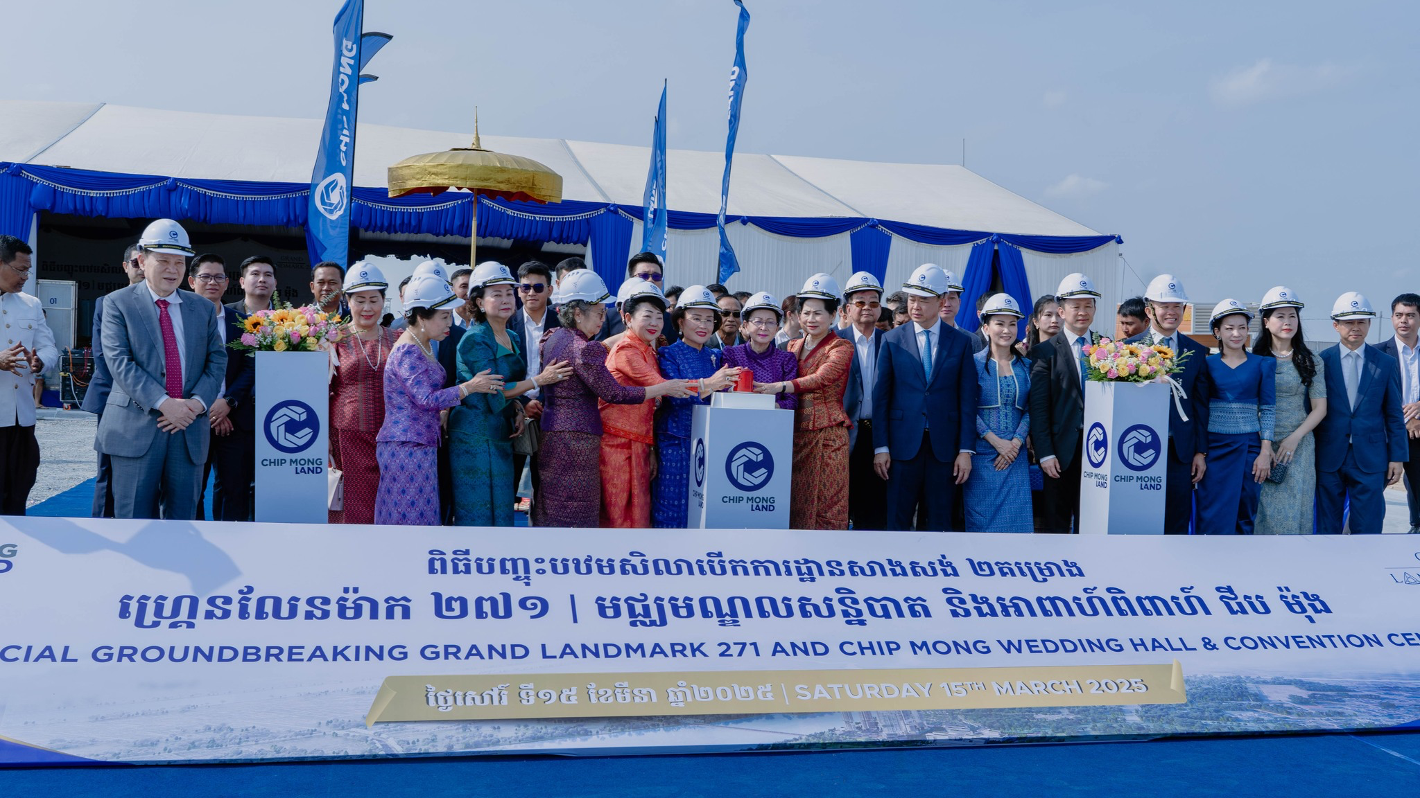ធំជាងគេ ក្នុងតំបន់ដ៏មានសក្ដានុពលបំផុតនៃរាជធានីភ្នំពេញ លោកអ្នកឧកញ៉ា អ្នកឧកញ៉ា ឧកញ៉ាៗ ដែលជាថ្នាក់ដឹកនាំកំពូលៗក្រុមហ៊ុន ជីប ម៉ុង នាព្រឹកថ្ងៃទី១៥ខែមីនា ឆ្នាំ២០២៥នេះ បានរៀបចំពិធីបញ្ចុះបឋមសិលាបើកការដ្ឋានសាងសង់គម្រោង គម្រោង ហ្គ្រេនលែនម៉ាក ២៧១ និងមជ្ឈមណ្ឌលសន្និបាត និងអាពាហ៍ពិពាហ៍ ជីប ម៉ុង ធំជាងគេនៅប៉ែកខាងត្បូងរាជធានីភ្នំពេញ ស្វាគមន៍ឆ្នាំ ២០២៥។