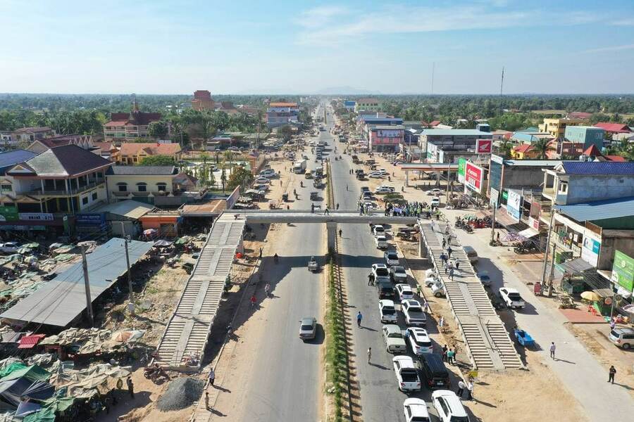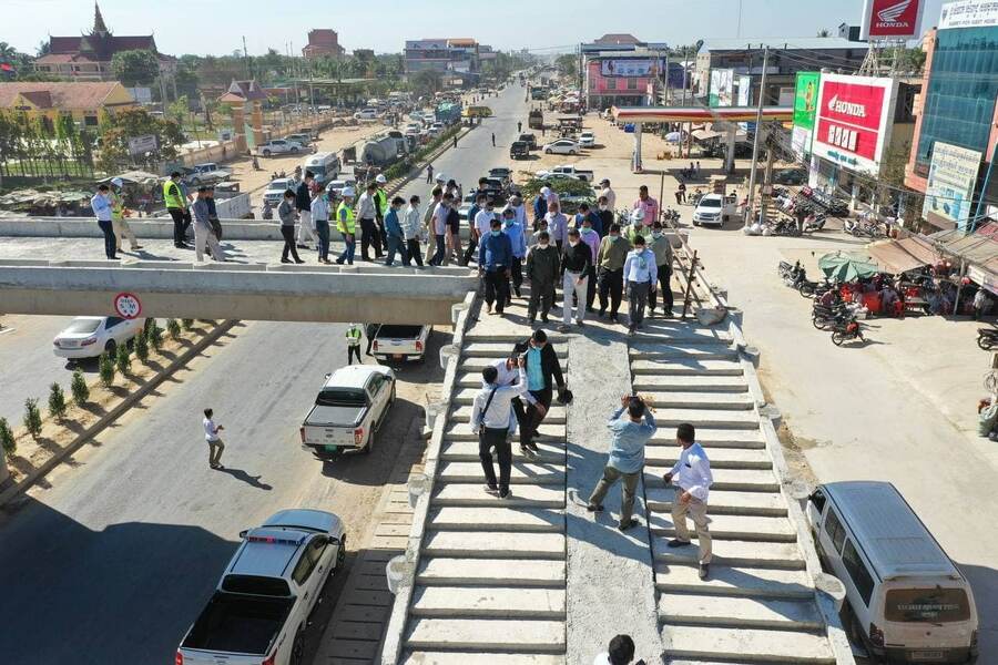 ឯកឧត្តមទេសរដ្ឋមន្ត្រី បានបញ្ជាក់ថា គម្រោងស្ថាបនាស្ពានអាកាសសម្រាប់អ្នកថ្មើរជើងឆ្លងកាត់នេះនៅតែបន្តសាងសង់ ដើម្បីសម្រួលការធ្វើដំណើរឆ្លងកាត់របស់ប្រជាពលរដ្ឋពីគ្រោះថ្នាក់ចរាចរណ៍ និងការកកស្ទះ ខណៈផ្លូវនេះមានទទឹងរហូតដល់២៤,៥ម៉ែត្រ និងមានទ្រូងផ្លូវចែកទិសចរាចរណ៍តាមបណ្តោយផ្លូវប្រវែង១០០ម៉ែត្រ ដែលបង្កផលវិបាកដល់ប្រជាពលរដ្ឋដើរឆ្លងកាត់។