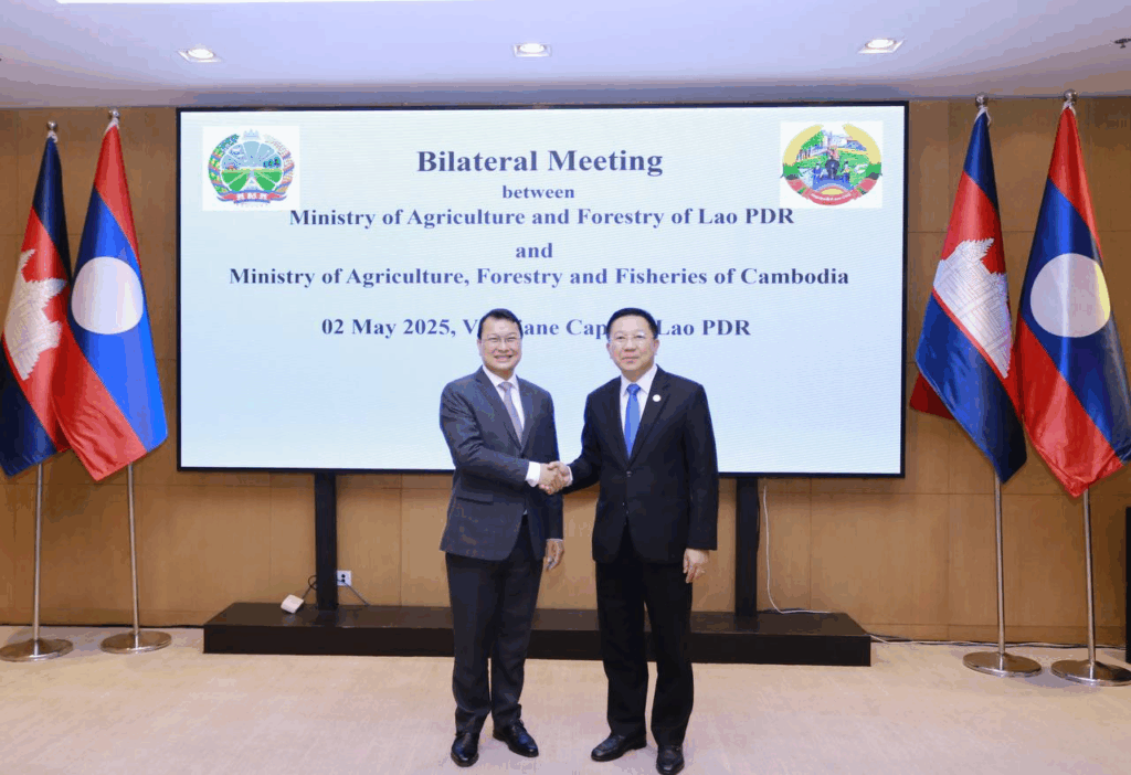 ក្នុងជំនួបប្រជុំទ្វេភាគី រវាងក្រសួងកសិកម្ម នៃព្រះរាជាណាចក្រកម្ពុជា និងក្រសួងកសិកម្មនៃសាធារណរដ្ឋប្រជាធិបតេយ្យប្រជាមានិតឡាវ កាលពីថ្ងៃទី២ ឧសភា រដ្ឋមន្រ្តីនៃប្រទេសទាំងពីរបានពិនិត្យលើវឌ្ឍនភាពនៃកិច្ចសហប្រតិបត្តិការទ្វេភាគីក្រោមក្របខណ្ឌនៃអនុស្សរណៈនៃការយោគយល់គ្នា(MOU) ដែលបានចុះហត្ថលេខារួមគ្នាកាលពីថ្ងៃទី៤ ខែធ្នូ ឆ្នាំ២០២៤។