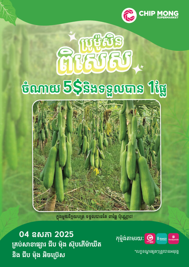 គ្រប់អតិថិជនទាំងអស់ ដែលបានចំណាយចាប់ពី ៥ ដុល្លារឡើងទៅ នឹងទទួលបានផ្លែល្ហុងធម្មជាតិ ដាំដោយកសិករខ្មែរ ១០០ ភាគរយ ចំនួន ១ ផ្លែ ហើយក្នុងមួយវិក្កយបត្រទទួលបានត្រឹមតែ ៣ ផ្លែប៉ុណ្ណោះ។ កម្មវិធីថែមជូនពិសេសនេះ ចាប់ផ្តើមពីថ្ងៃទី ០៤ ខែឧសភា ឆ្នាំ ២០២៥ នៅគ្រប់សាខារបស់ ជីប ម៉ុង ស៊ុបភើម៉ាឃីត និង ជីប ម៉ុង អ៊ិចប្រេស រហូតដល់អស់ពីស្តុក។