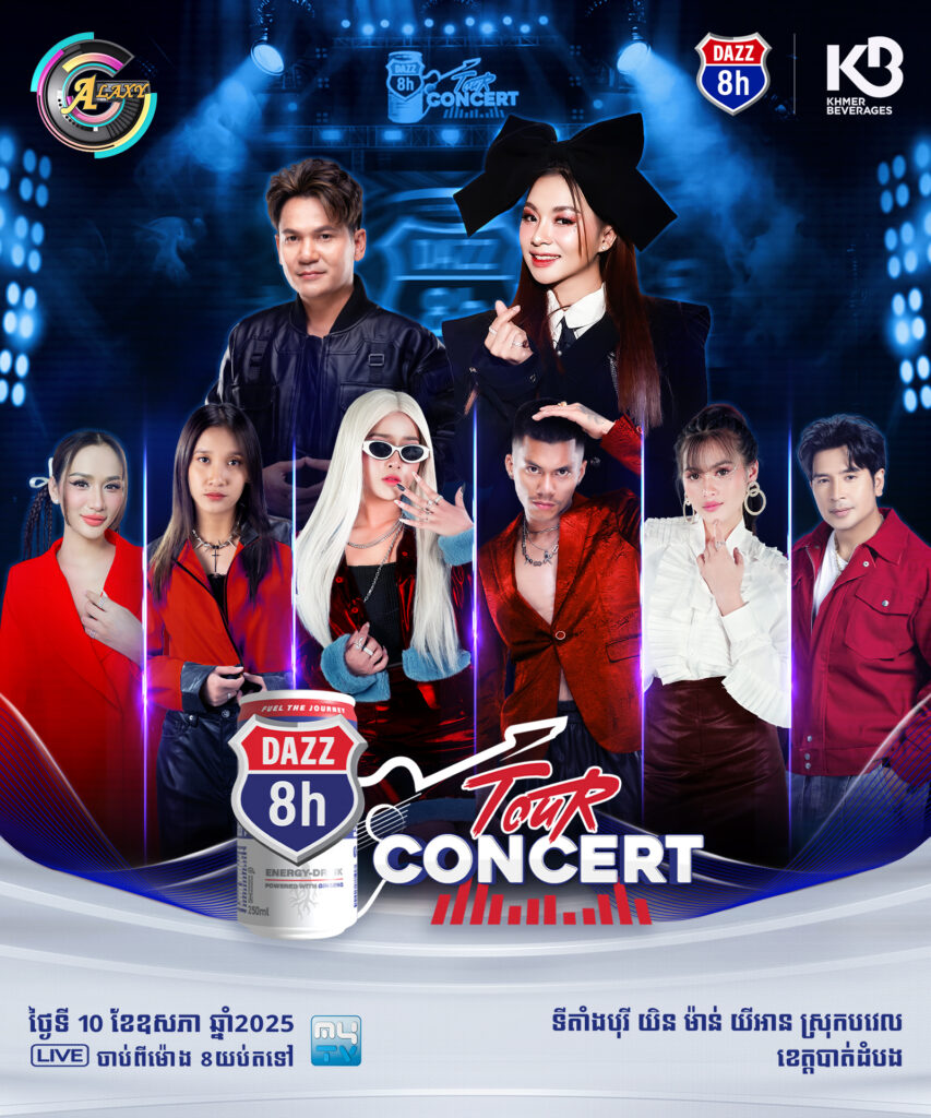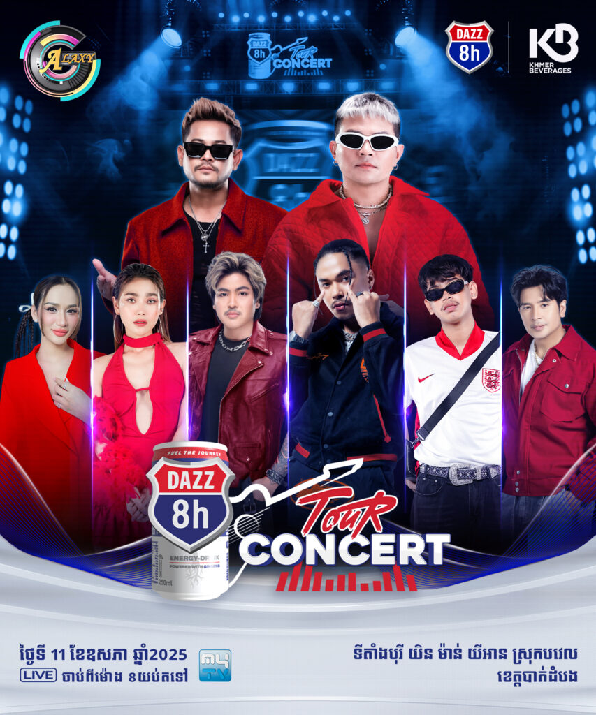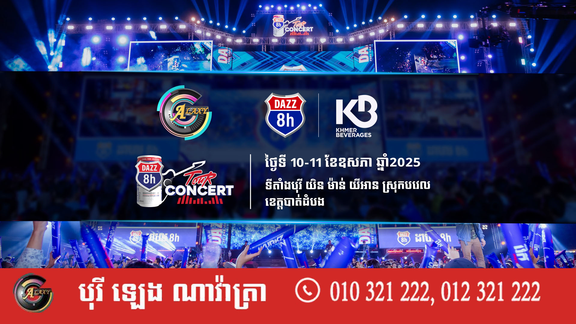 មហាព្រឹត្តិការណ៍ប្រគំតន្រ្តីប្រចាំប្រទេស Dazz Tour Concert របស់ក្រុមហ៊ុនខ្មែរ ប៊ែវើរីជីស សហការជាមួយផលិតកម្ម Galaxy Navatra សប្តាហ៍នេះមានកំពូលតារាចម្រៀង ឧកញ៉ា ខេមរៈ សិរីមន្ត ,លោក ខេម ,កញ្ញា តន់ ចន្ទសីម៉ា ,លោក ខាន់ ជេមស៌ រួមជាមួយលោក Tempo Tris ,កញ្ញា L-D-A , លោក K-LA ,កញ្ញា អេមមី , លោក វង្ស ថាណាន់ , កញ្ញា ធីតា ដាវីកា , លោក Vin Trapz និងកញ្ញា ឡុង ចរិយា ។