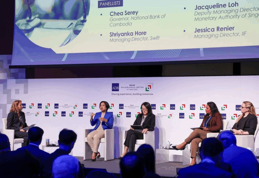 ភ្នំពេញ៖ លោកស្រី ជា សិរី ទេសាភិបាលធនាគារជាតិនៃកម្ពុជា បានអញ្ជើញចូលរួមជាវាគ្មិនក្នុងវេទិកាតុមូលស្តីពី «ប្រព័ន្ធទូទាត់ឆ្លងដែន៖ ពីការដាក់ឱ្យប្រើប្រាស់ហេដ្ឋារចនាសម្ពន័្ធ រហូតដល់ការប្រើប្រាស់ដោយរលូនរបស់អតិថិជន» (Cross-border payment rails: from infrastructure roll-out to a smooth customer journey) កាលពីថ្ងៃទី៦ ខែឧសភា ឆ្នាំ២០២៥ នៅទីក្រុងមីឡង់ ប្រទេសអ៊ីតាលី។