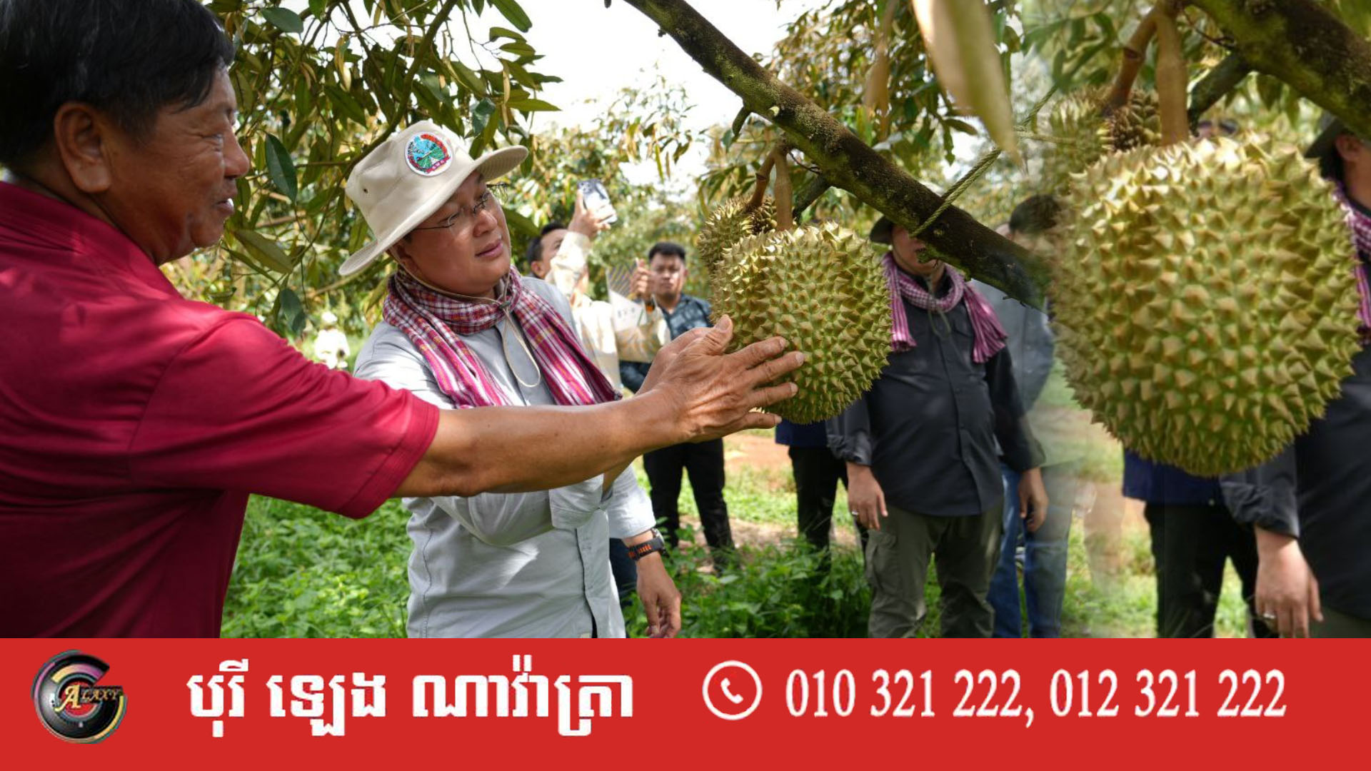 នេះបើតាមដំណើរចុះពិនិត្យចម្ការទុរេន នៅឃុំអូរសោម នៃខេត្តពោធិ៍សាត់ ដើម្បីស្ដាប់សំណូមពរកសិករ និងផ្ដល់ការគាំទ្រចាំបាច់ ដឹកនាំដោយលោក ឌិត ទីណា រដ្ឋមន្រ្តីក្រសួងកសិកម្ម រុក្ខាប្រមាញ់ និងនេសាទ កាលពីថ្ងៃទី២៤ ខែឧសភា។