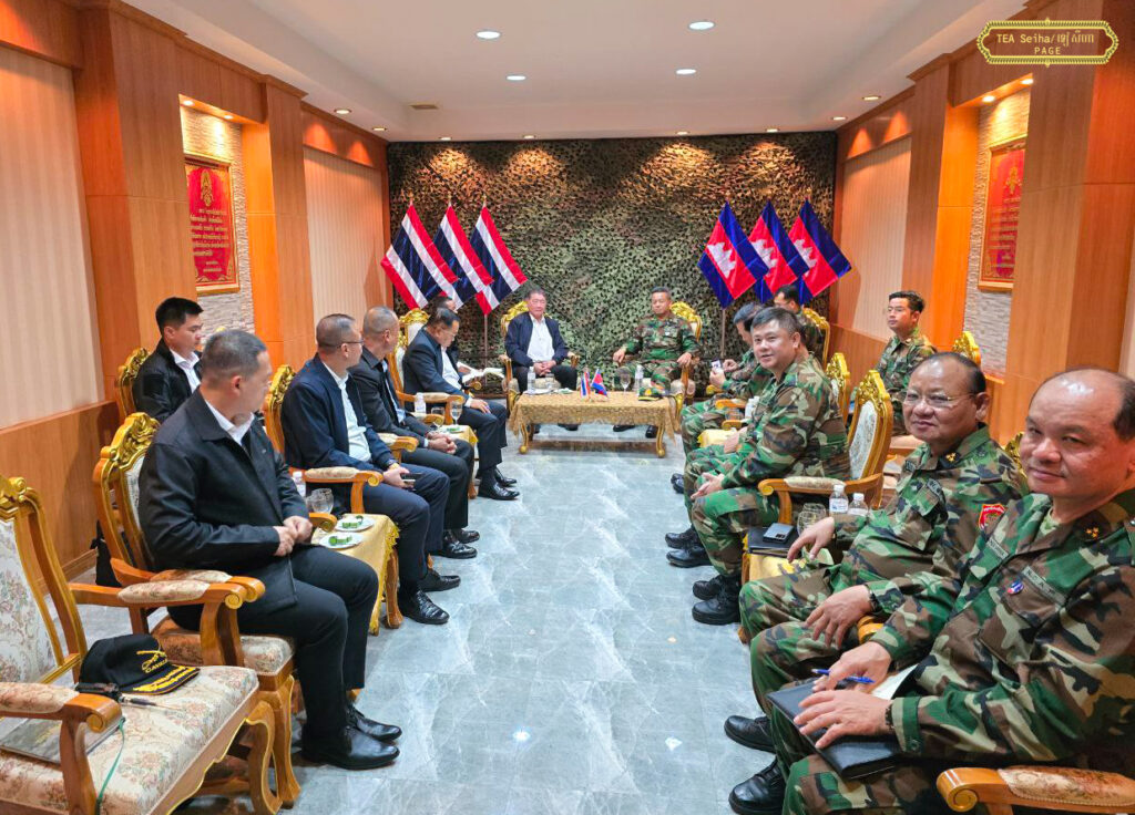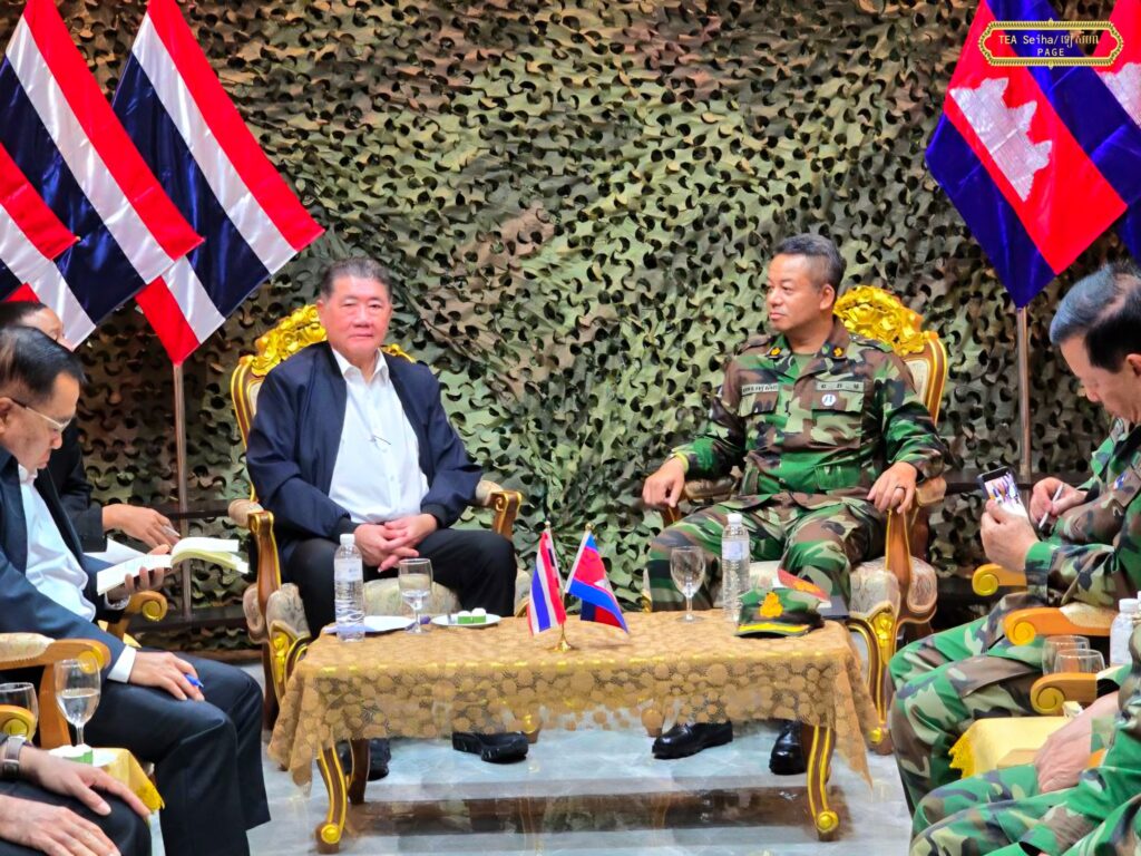 នៅរសៀលថ្ងៃទី៥ ខែមិថុនា ឆ្នាំ២០២៥ ឯកឧត្តម នាយឧត្តមសេនីយ៍ ទៀ សីហា ឧបនាយករដ្ឋមន្ត្រី រដ្ឋមន្ត្រីក្រសួងការពារជាតិ បានជួបពិភាក្សាជាមួយឯកឧត្តម Phumtham Wechayachai ឧបនាយករដ្ឋមន្ត្រី រដ្ឋមន្ត្រីក្រសួងការពារជាតិថៃ អំពីភាពតានតឹងតាមព្រំដែន ដែលបានប្រព្រឹត្តទៅនៅស្រុកអារញ្ញប្រថេត ខេត្តស្រះកែវ ព្រះរាជាណាចក្រថៃ។