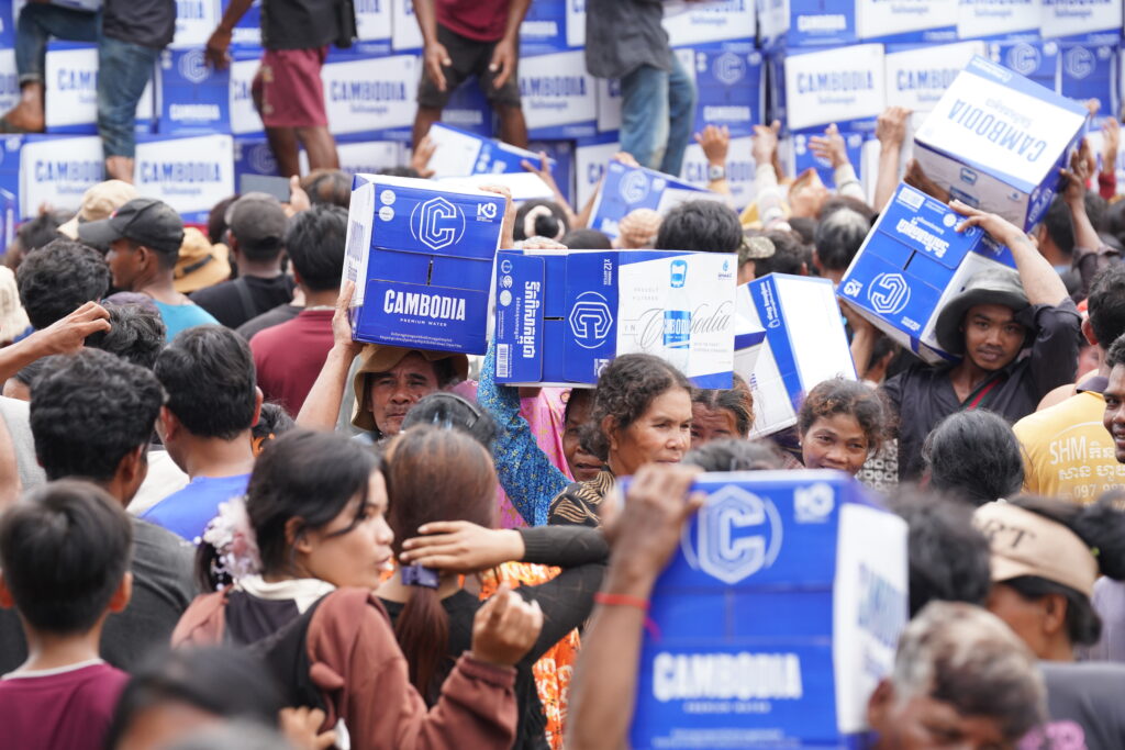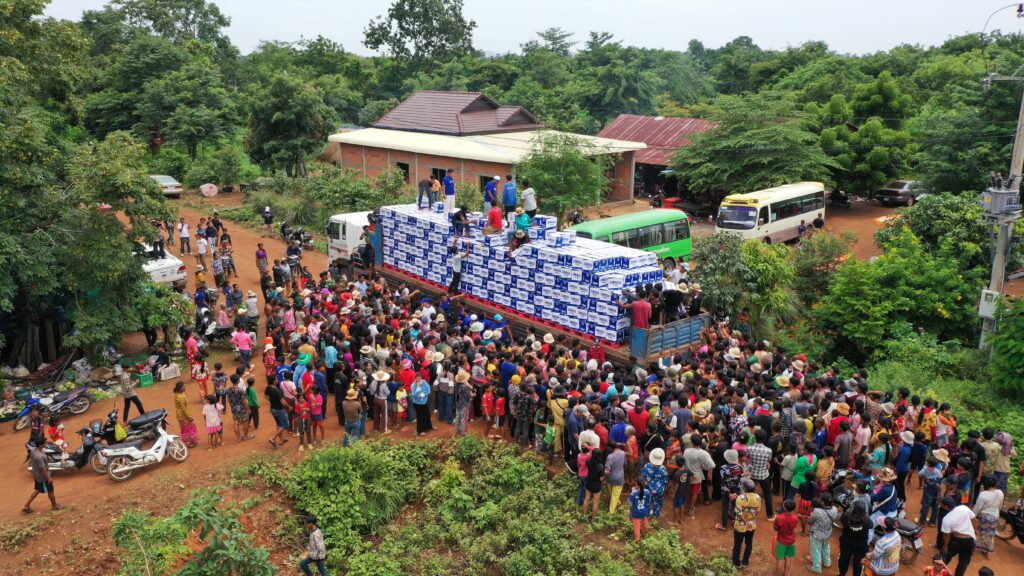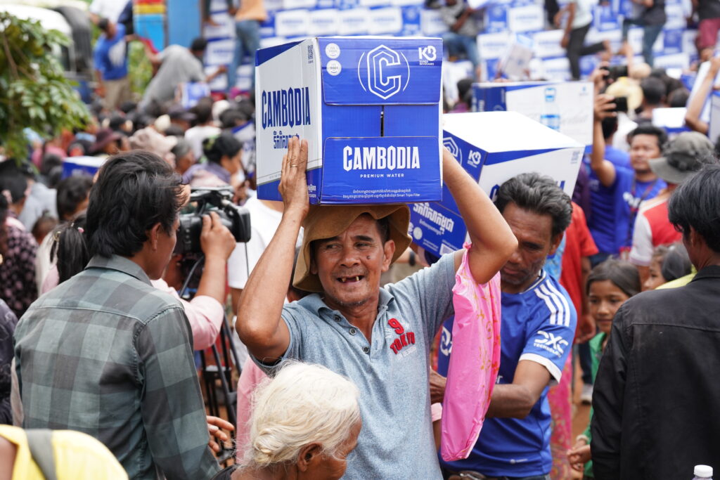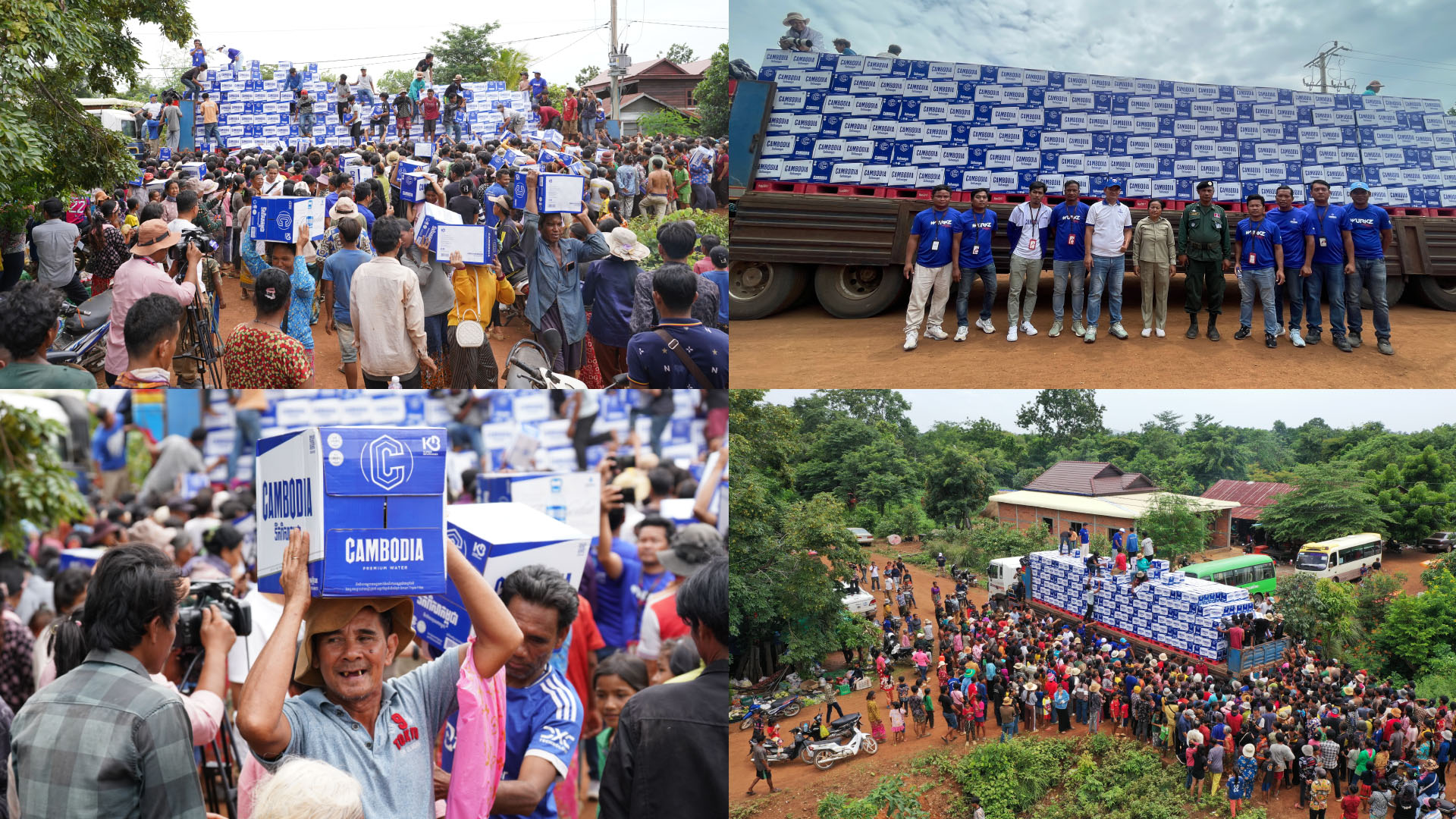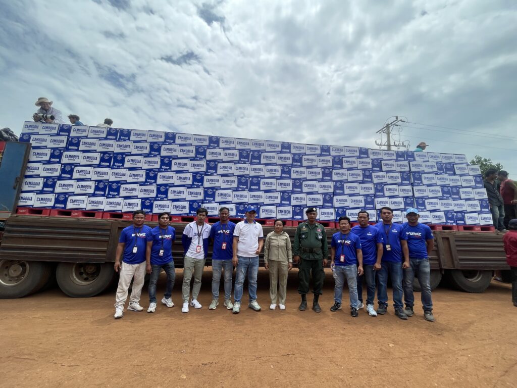ខ្មែរ ប៊ែវើរីជីស រៀបចំឧបត្ថម្ភទឹកពិសាកម្ពុជាចំនួន ៧៥០០ កេស ចែកជូនប្រជាជននៅតំបន់ភៀសខ្លួន ខេត្តឧត្តរមានជ័យ