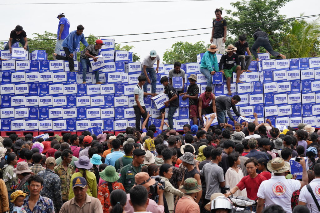 (ឧត្តរមានជ័យ)៖ នាថ្ងៃទី ២៦ ខែកក្កដា ឆ្នាំ ២០២៥ ក្រុមហ៊ុន ខ្មែរ ប៊ែវើរីជីស បាននាំយកទឹកពិសាកម្ពុជាចំនួន ៧៥០០ កេស មកចែកជូនដោយផ្ទាល់ដល់ប្រជាជនដែលភៀសខ្លួនមកទីទួលសុវត្ថិភាព ស្ថិតនៅតំបន់ស្រុកចុងកាល ខេត្តឧត្តរមានជ័យ។