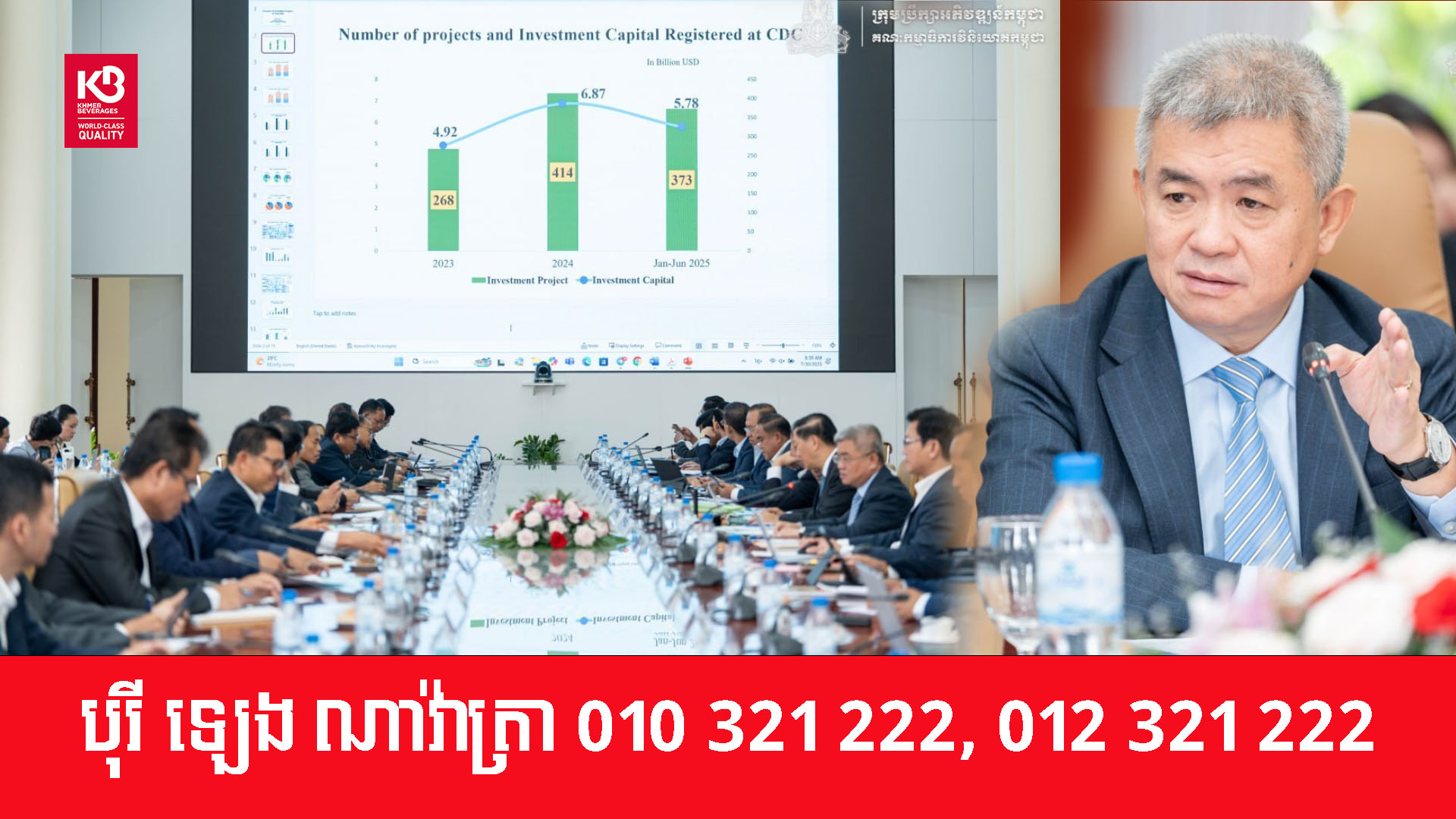 លោក ជា វុទ្ធី អគ្គលេខាធិការគណៈ កម្មាធិការវិនិយោគកម្ពុជា នាថ្ងៃទី៣០ ខែកក្កដា ឆ្នាំ២០២៥នេះ បានដឹកនាំ“កិច្ចប្រជុំច្រកចេញ-ចូលតែមួយ” លើកទី១១ ក្នុងឆ្នាំ២០២៥ ដើម្បីពិនិត្យពិភាក្សាលើសំណើសុំចុះបញ្ជីគម្រោងវិនិយោគមានលក្ខណៈសម្បត្តិគ្រប់គ្រាន់ចំនួន ៧គម្រោង។