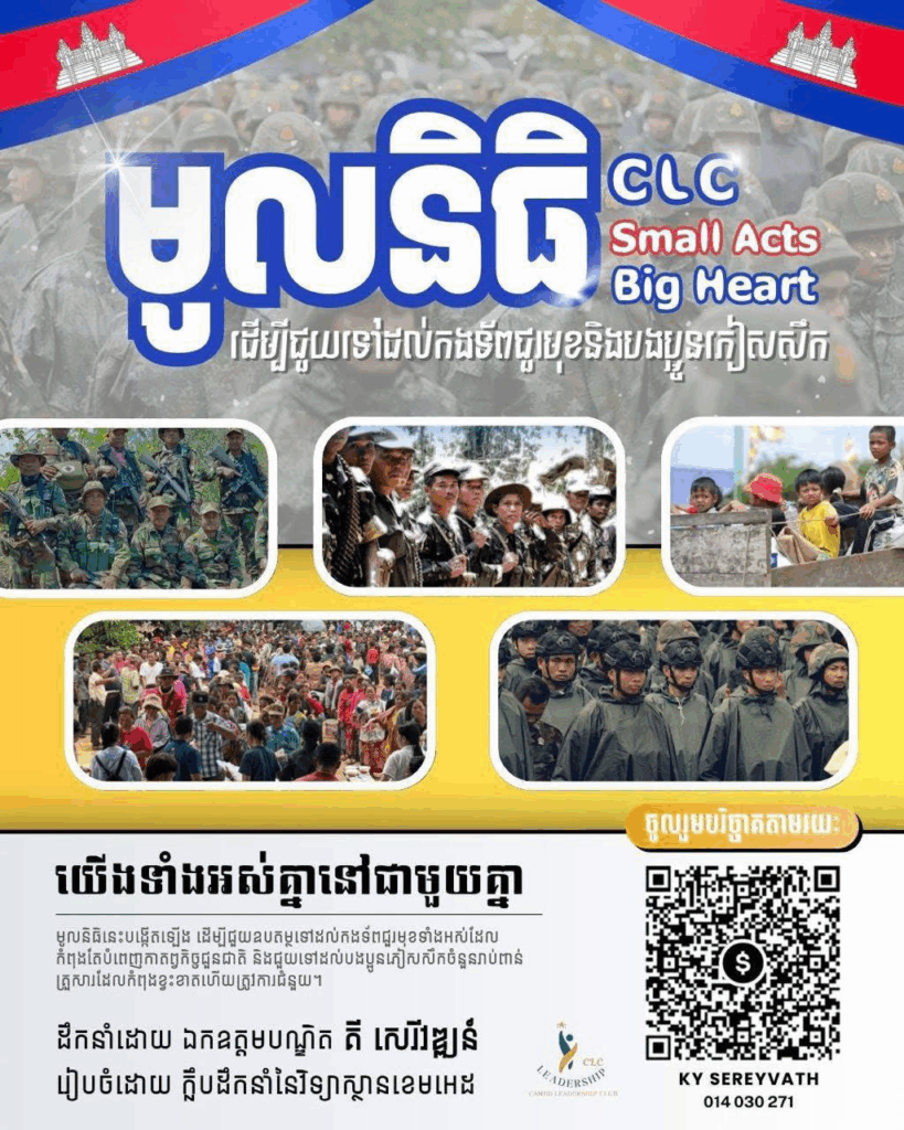 សូមជម្រាបជូនថា មូលនិធិ ClC Small Acts Big Heart បង្កើតឡើងដើម្បីជួយឧបត្ថម្ភទៅដល់កងទ័ពជួរមុខទាំងអស់ដែលកំពុងតែបំពេញកាតព្វកិច្ចជូនជាតិ និងជួយទៅដល់បងប្អូនភៀសសឹកចំនួនរាប់ពាន់គ្រួសារដែលកំពុងខ្វះខាត ហើយត្រូវការជំនួយ។