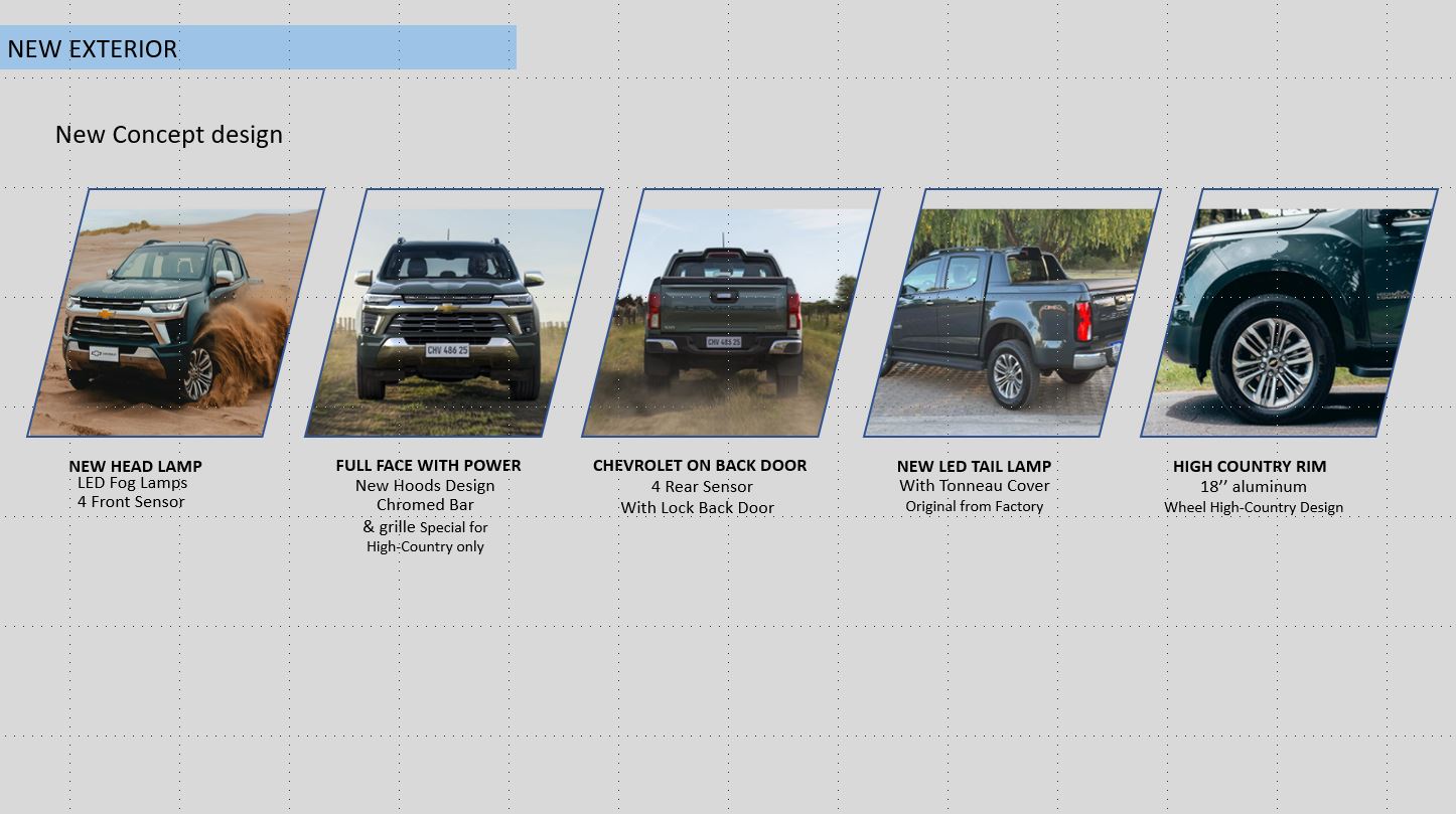 ក្រុមហ៊ុន Chevrolet បានប្តេជ្ញាចិត្តទៅលើ នវានុវត្តន៍និងឧត្តមភាពនៃស្លាកយីហោ។ រថយន្តភីកអាប់ Colorado ត្រូវបានបន្តអភិវឌ្ឍន៍ពីរថយន្តដែលប្រើប្រាស់ក្នុងតំបន់ ទៅជារថយន្តដែលទទួលស្គាល់លើសកលលោក។