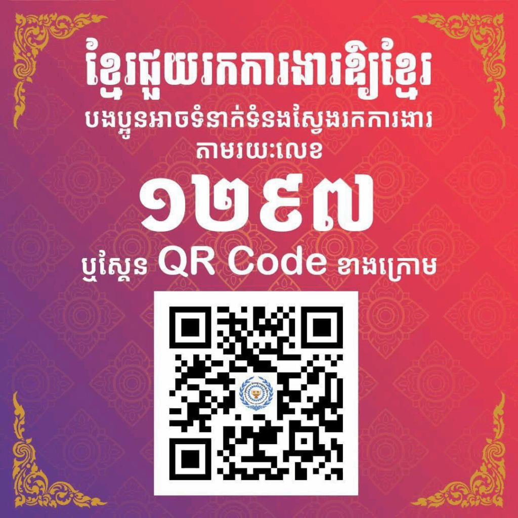 បងប្អូនអាចស្កេន QR Code ខាងក្រោមនេះដើម្បីទទួលបានបញ្ជីឈ្មោះក្រុមហ៊ុន សហគ្រាសដែលត្រូវការកម្លាំងពលកម្ម!