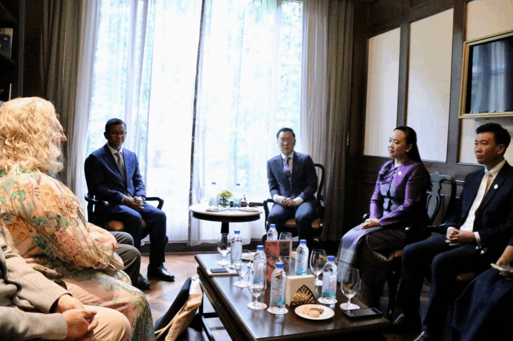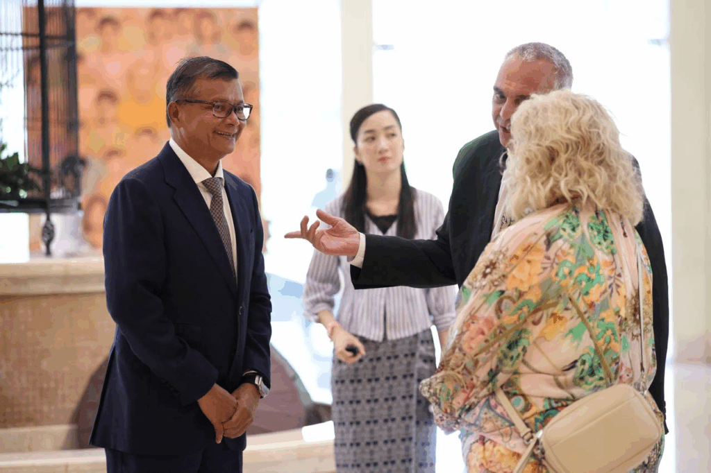 ក្នុងជំនួបពិភាក្សាការងាររវាងលោក Derek Yip ឯកអគ្គរដ្ឋទូតអូស្ត្រាលីប្រចាំកម្ពុជា និងប្រតិភូនៃនាយកដ្ឋានអប់រំ រដ្ឋាភិបាលអូស្ត្រាលីខាងលិច ជាមួយលោក ហង់ជួន ណារ៉ុន ឧបនាយករដ្ឋមន្ត្រី រដ្ឋមន្ត្រីក្រសួងអប់រំ យុវជន និងកីឡា កាលពីថ្ងៃទី១៧ សីហា ឆ្នាំ២០២៥ ដើម្បីស្វែងយល់ពីប្រព័ន្ធអប់រំ និងកម្មវិធីសិក្សានៃអូស្ត្រាលីខាងលិច ចែករលែកបទពិសោធលើការងារអប់រំ និងវឌ្ឍនភាពកិច្ចសហប្រតិបត្តិការនានាក្នុងវិស័យអប់រំរវាងប្រទេសអូស្ត្រាលី និងកម្ពុជា សំដៅពិនិត្យលទ្ធភាពក្នុងការបន្តជំរុញកិច្ចសហប្រតិបត្តិការលើវិស័យអប់រំរវាងប្រទេសទាំងពីរឱ្យកាន់តែប្រសើរឡើង។