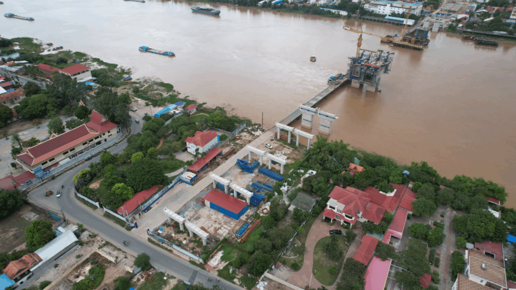 អង្គភាពគ្រប់គ្រងគម្រោងបានពន្លឿនការងារសាងសង់ផ្លូវតភ្ជាប់ទៅផ្លូវជាតិលេខ១ និងបន្តពង្រឹងសុវត្ថិភាពការងារ ដោយហេតុថារដូវវស្សាទឹកទន្លេចាប់ផ្តើមឡើង និងបន្តថែទាំ ដោយបំពាក់បន្ថែមពោងសុវត្ថិភាព លើទឹកធានាបីសុវត្ថិភាពអ្នកប្រើប្រាស់មធ្យោបាយដឹកជញ្ជូនតាមផ្លូវទឹក ឆ្លងទីតាំងការដ្ឋាននោះ។