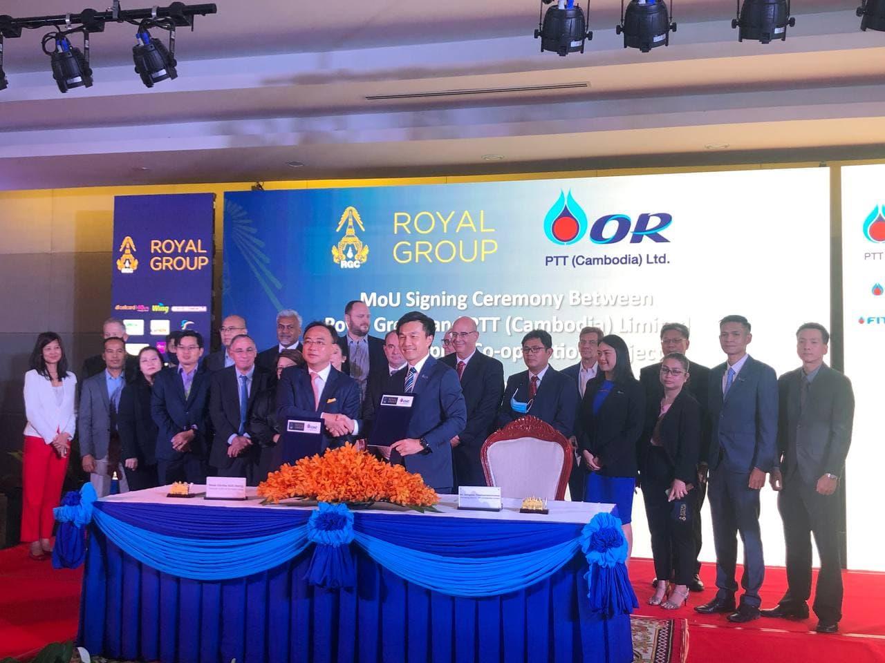 ក្រុមហ៊ុន រ៉ូយ៉ាល់គ្រុប ដែលមានអ្នកឧកញ៉ាគិត ម៉េង ជាអគ្គនាយក និងតំណាងក្រុមហ៊ុនផ្គត់ផ្គង់ប្រេងឥន្ធនៈ PTT ដែលមានលោក Songpon Thepnumsommanus នាយកគ្រប់គ្រងក្រុមហ៊ុនប្រចាំប្រទេសកម្ពុជាបានចុះហត្ថលេខាយោគយល់ លើការសហការដើម្បីជំរុញប្រតិបត្តិការអាជីវកម្មនៅក្នុងប្រទេសកម្ពុជា។