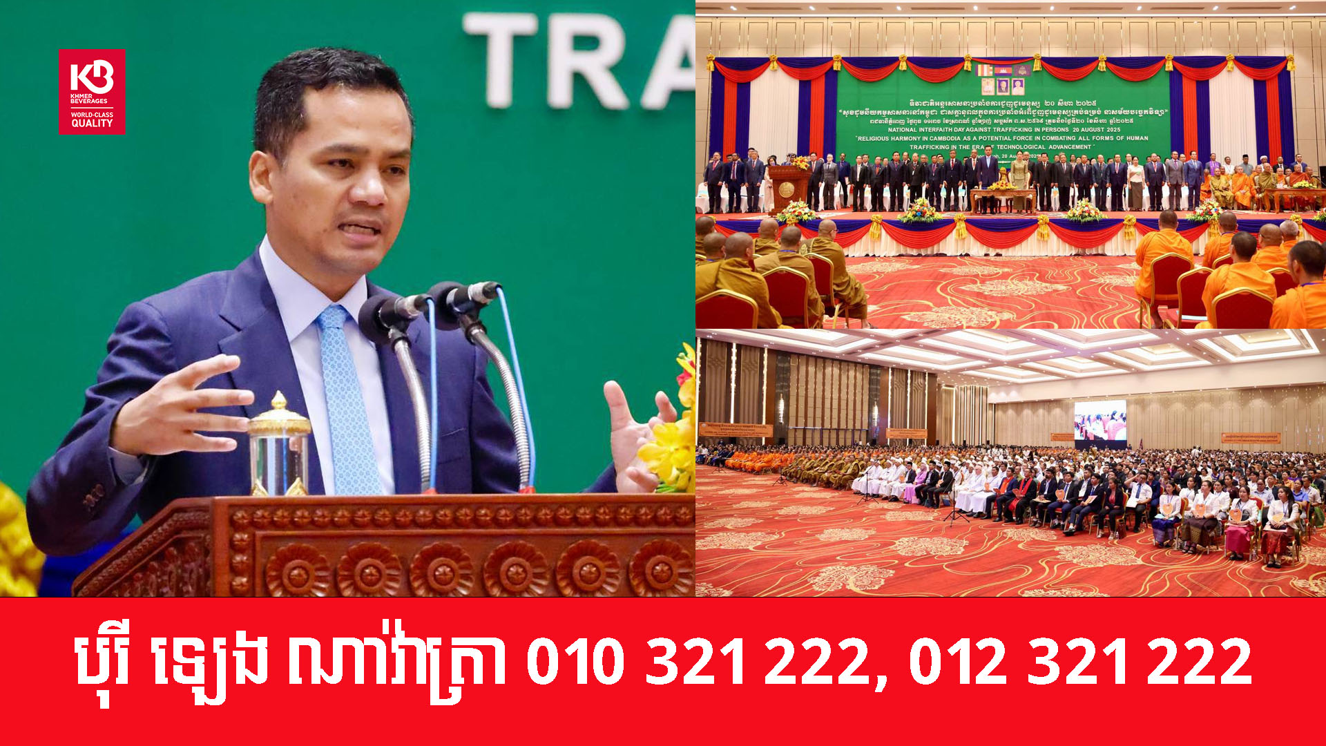 ការអំពាវនាវរបស់ឧបនាយករដ្ឋមន្ត្រី រដ្ឋមន្ត្រីក្រសួងមហាផ្ទៃ បានធ្វើឡើង ក្នុងឱកាសអញ្ជើញជាអធិបតីក្នុងទិវាជាតិអន្តរសាសនាប្រឆាំងការជួញដូរមនុស្ស២០ សីហា ២០២៥ ក្រោមប្រធានបទ «សុខដុមនីយកម្មសាសនានៅកម្ពុជា ជាសក្ដានុពលក្នុងការប្រឆាំងអំពើជួញដូរមនុស្សគ្រប់ទម្រង់នាសម័យបច្ចេកវិទ្យា» នៅមជ្ឈមណ្ឌលសន្និបាត និងពិព័រណ៍អន្តរជាតិជ្រោយចង្វារ នារសៀលថ្ងៃទី២០ ខែសីហា ឆ្នាំ២០២៥។