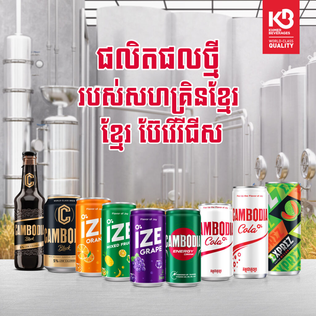(ភ្នំពេញ)៖ ស្របតាមនិន្នាការលើកកម្ពស់ពាក្យស្លោក “ខ្មែរ គាំទ្រផលិតផលខ្មែរ” ក្រុមហ៊ុន ខ្មែរ ប៊ែវើរីជីស បានបញ្ចេញរូបរាងផលិតផលថ្មីគឺ CAMBODIA COLA ដែលទទួលបានការចាប់អារម្មណ៍ខ្លាំងនាពេលថ្មីៗនេះ រួមជាមួយភេសជ្ជៈ ៤ ប្រភេទផ្សេងទៀតគឺ ភេសជ្ជៈប៉ូវកម្លាំង កម្ពុជា, CAMBODIA BLACK BEER, ភេសជ្ជៈ EXPREZ រសជាតិត្រសក់ផ្អែម, និងទឹកក្រូច អាយស៍ រសជាតិក្រូច ដែលស័ក្តិសមសម្រាប់ឱកាសបុណ្យកាន់បិណ្ឌ និងភ្ជុំបិណ្ឌនាពេលខាងមុខ ក៏ដូចជាគ្រប់កម្មវិធីជួបជុំផ្សេងៗ។