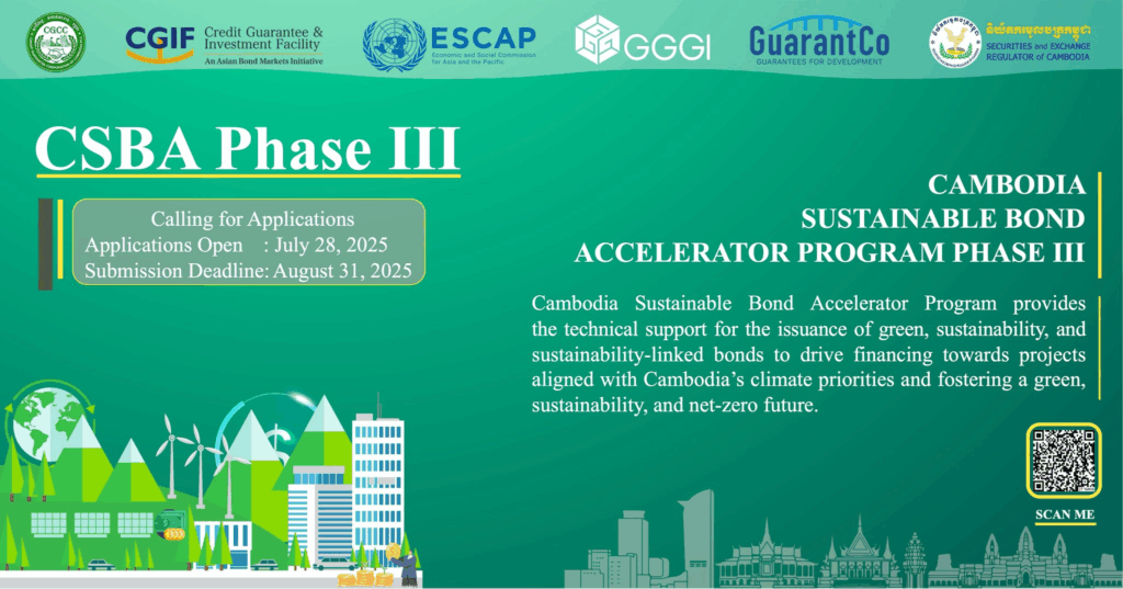 សូមបញ្ជាក់ថា កម្មវិធីជំរុញការបោះផ្សាយសញ្ញាបណ្ណចីរភាពនៅកម្ពុជា (CSBA) ត្រូវបានឱ្យដាក់ដំណើរការវគ្គទី៣ ជាផ្លូវការហើយ និងបានបើកទទួលដាក់ពាក្យស្នើសុំរហូតដល់ថ្ងៃទី៣១ ខែសីហា ឆ្នាំ២០២៥។