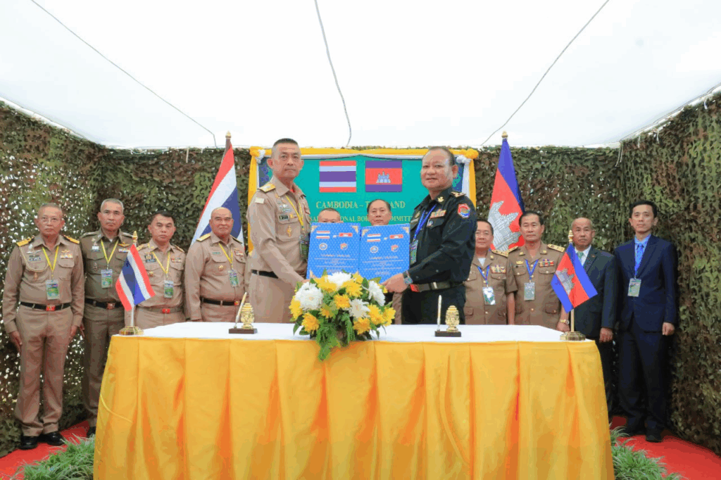 យោងតាមសេចក្ដីប្រកាសព័ត៌មាន នៅថ្ងៃទី២៥ ខែសីហា ឆ្នាំ២០២៥នេះ ក្រសួងការពារជាតិ បានលើកឡើងអំពីលទ្ធផល នៃកិច្ចប្រជុំវិសាមញ្ញរបស់គណៈកម្មាធិការព្រំដែនថ្នាក់យោធភូមិភាគកម្ពុជា-ថៃ (RBC) រវាងយោធភូមិ ភាគទី៥របស់កម្ពុជា និងបញ្ជាការដ្ឋានការពារព្រំដែនខេត្តច័ន្ទបុរី និងខេត្តត្រាតរបស់ថៃ នៅថ្ងៃទី២៥ ខែសីហា ឆ្នាំ២០២៥ ដោយកម្ពុជាធ្វើជាម្ចាស់ផ្ទះ។