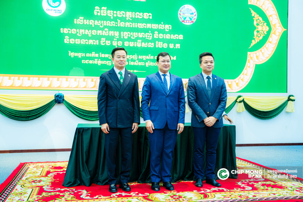 អនុស្សរណៈនៃការយោគយល់នេះត្រូវបានចុះហត្ថលេខាដោយអ្នកឧកញ៉ា លាង ម៉េង អគ្គនាយកធនាគារ​ ជីប ម៉ុង និង ឯកឧត្តម ឃឹម ហ្វីណង់ អនុរដ្ឋលេខាធិការ និងជាអ្នកនាំពាក្យ ក្រសួងកសិកម្ម រុក្ខាប្រមាញ់ និងនេសាទ ក្រោមអធិបតីភាពដ៍ខ្ពង់ខ្ពស់របស់ ឯកឧត្ដម ឌិត ទីណា រដ្ឋមន្ត្រីក្រសួងកសិកម្ម រុក្ខាប្រមាញ់ និងនេសាទ។