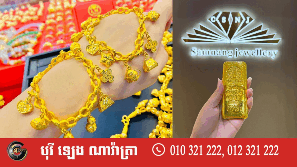 ដោយឡែកតម្លៃមាស កាលពីថ្ងៃទី២៨ ខែសីហា ឆ្នាំ២០២៥ មានតម្លៃ ៤០៨ដុល្លារ នៅក្នុងមួយជីជាតម្លៃលក់ចេញ និងទិញចូលក្នុងតម្លៃ៣៩៨ដុល្លារ។ បើធៀបនឹងថ្ងៃនេះ មាសឡើងថ្លៃ២ដុល្លារនៅក្នុងជី។