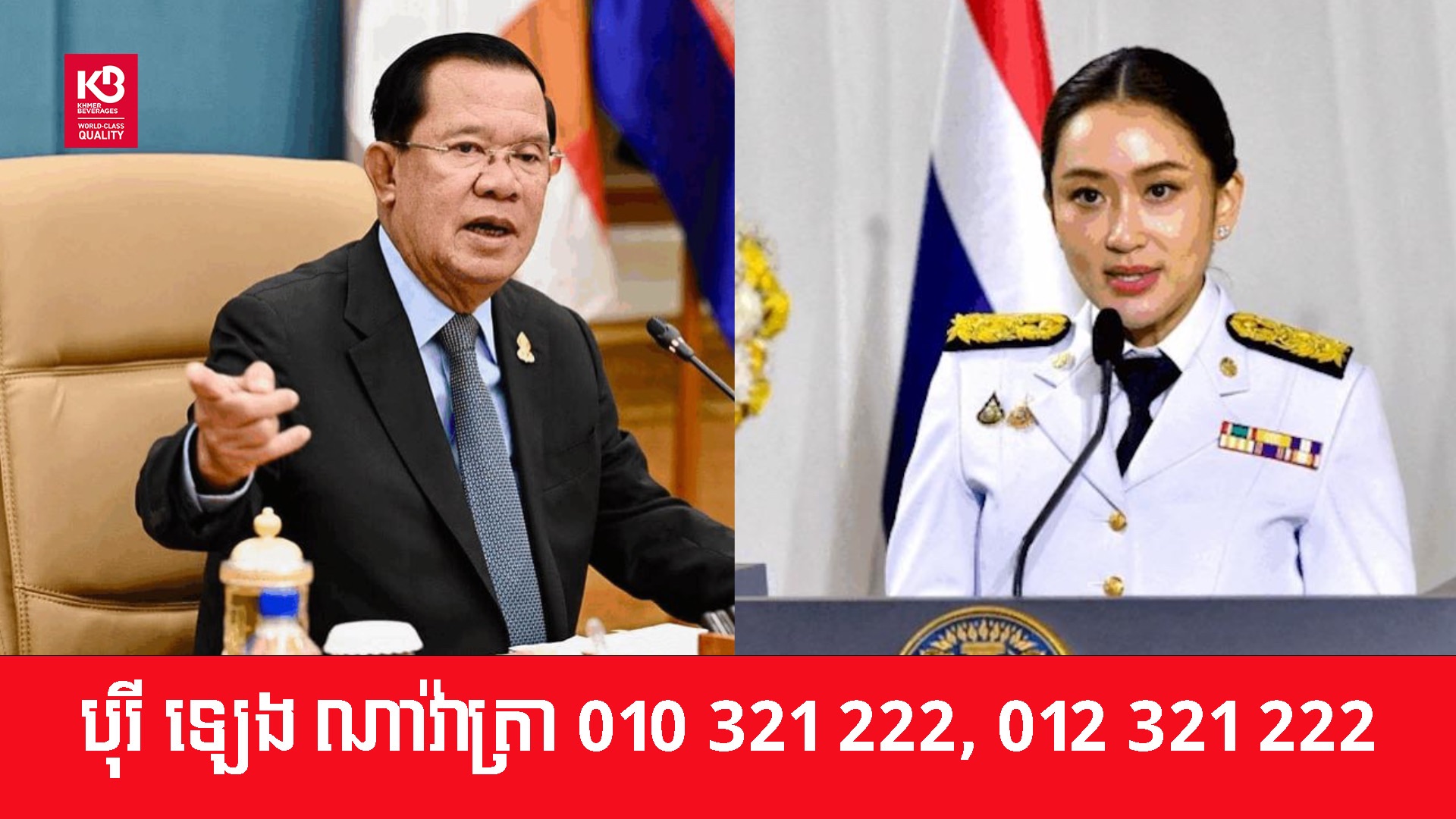 នាយករដ្ឋមន្រ្តីថៃ លោកស្រី Paetongtarn Shinawatra ត្រូវបានតុលាការធម្មនុញ្ញថៃ សម្រេចដកតំណែងនាយករដ្ឋមន្ត្រីផ្លូវការ នៅថ្ងៃទី២៩ ខែសីហានេះ ហេីយបេីតាមនីតិវិធីផ្លាស់ប្តូរនាយករដ្ឋមន្ត្រីថៃថ្មី នឹងសមល្មមគ្រប់បីខែ តាមការវាយតម្លៃរបស់សម្តេចតេជោ ហ៊ុន សែន នាយឧត្តមសេនីយ៍ផុតលេខ ផ្កាយមាស៥។