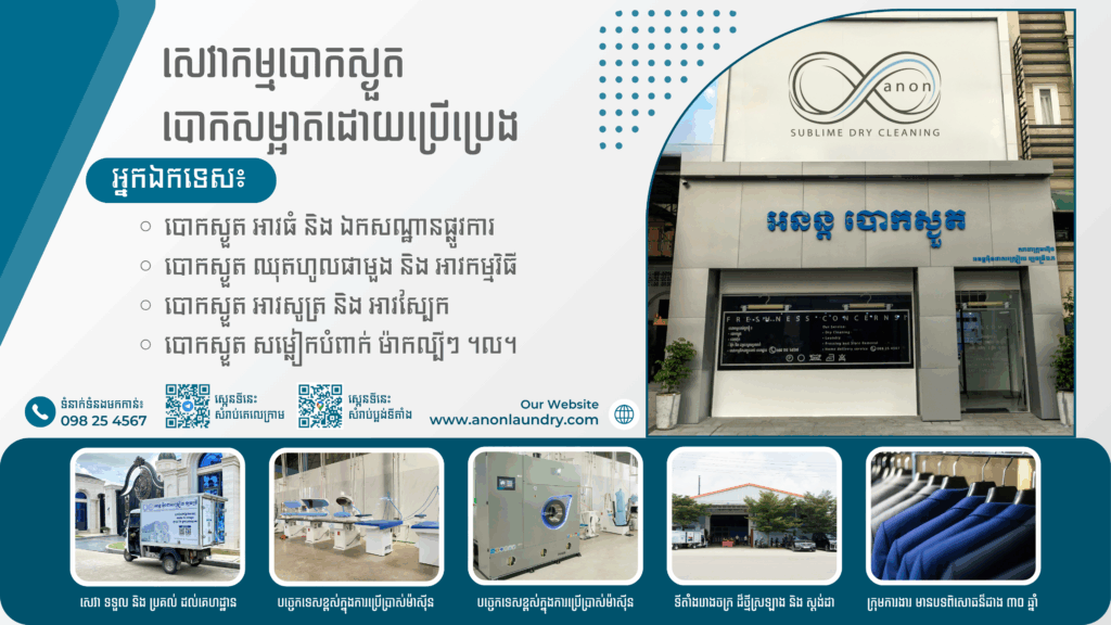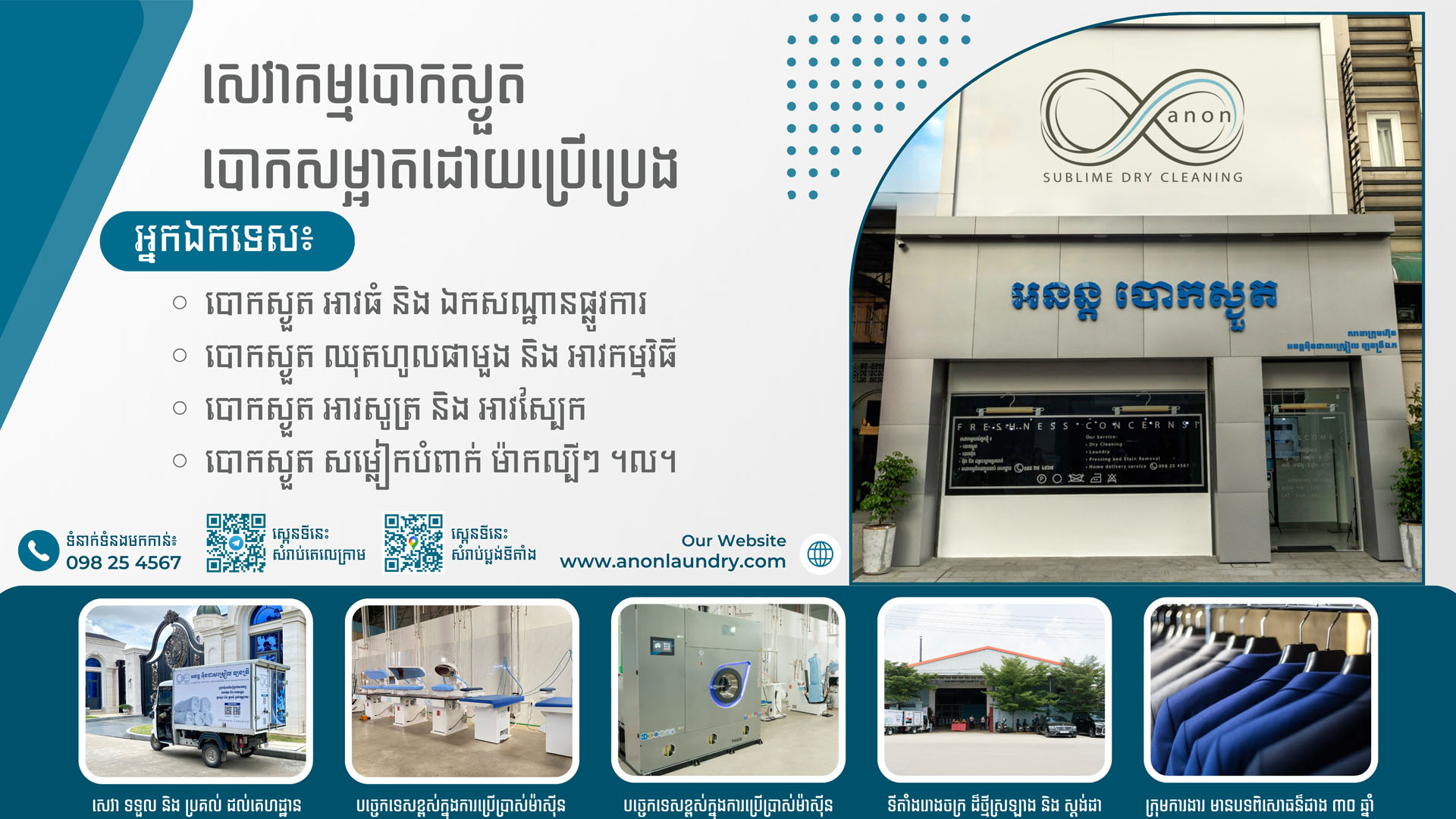 ក្រុមការងារមានបទពិសោធន៍ជាង៣០ឆ្នាំ! អនន្ត បោកស្ងួត ផ្តល់សេវាថែរក្សាសម្លៀកបំពាក់មានស្តង់ដារខ្ពស់ នៅរាជធានីភ្នំពេញ