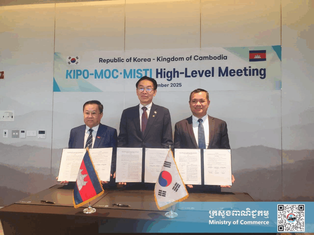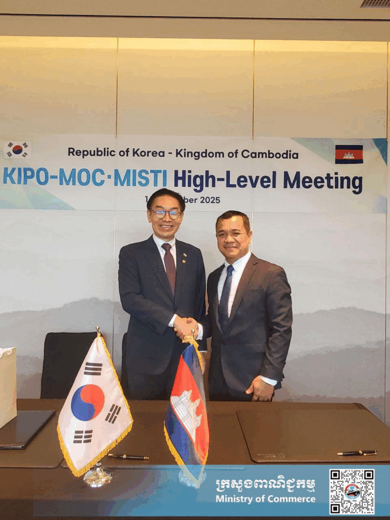 ក្រសួងពាណិជ្ជកម្ម កាលថ្ងៃចន្ទ ទី១ ខែកញ្ញា ឆ្នាំ២០២៥ បានជួបពិភាក្សាជាមួយអង្គភាពកម្មសិទ្ធិបញ្ញាកូរ៉េ (KIPO)នៅទីក្រុងសេអ៊ូល សាធារណរដ្ឋកូរ៉េ ដើម្បីចុះហត្ថលេខាលើផែនការសកម្មភាពពាក់ព័ន្ធនឹងកម្មសិទ្ធិបញ្ញាសម្រាប់អនុវត្តឆ្នាំ២០២៥-២០២៧ សំដៅរួមគ្នាលើកកម្ពស់ផលិតផលម៉ាកសម្គាល់ភូមិសាស្ត្រទំនិញ។
