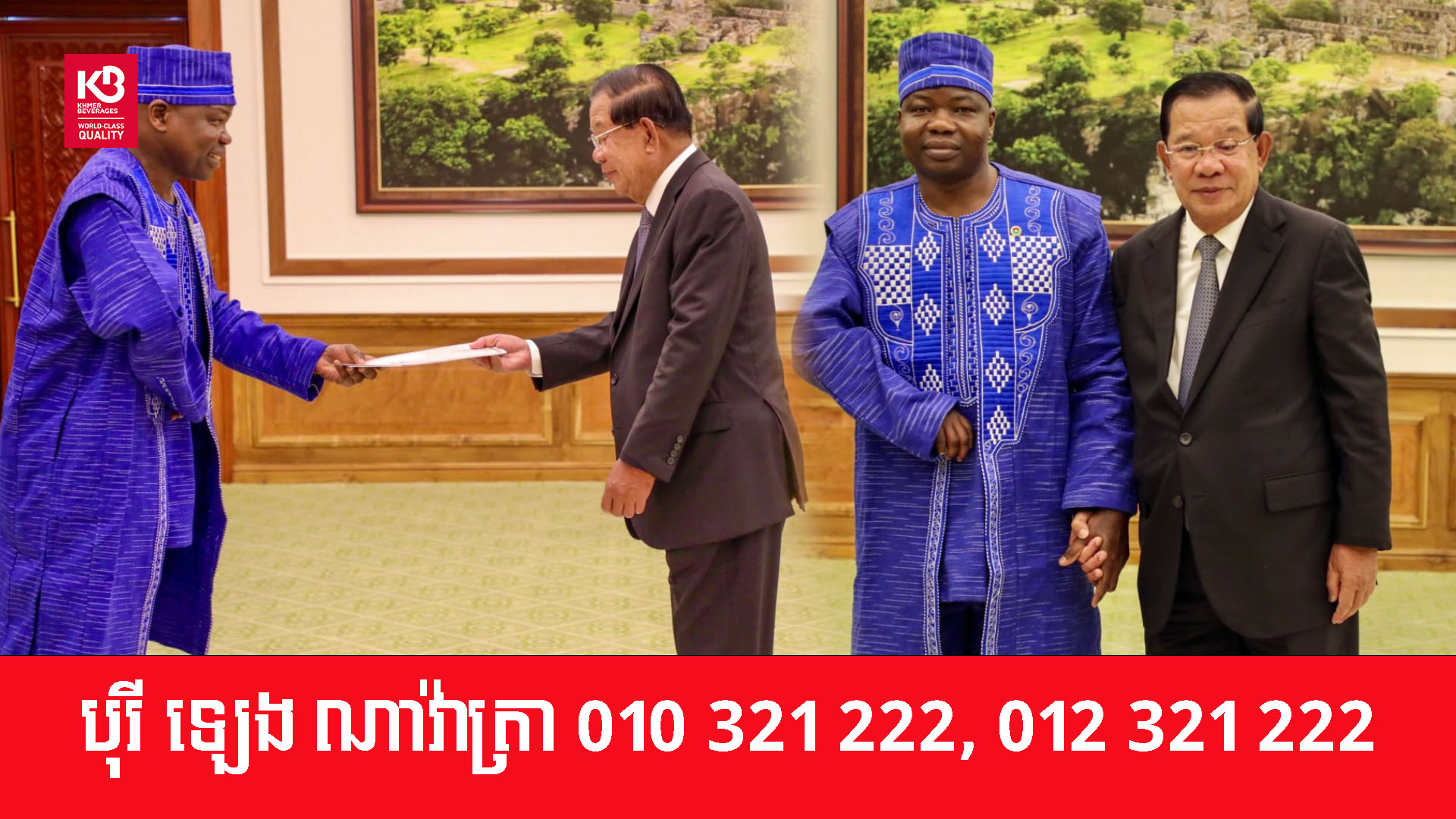 ទន្ទឹមគ្នានេះ តាមរយៈជំនួបពិភាក្សាខាងលើ សម្តេចតេជោ ហ៊ុន សែន ក៏បានបង្ហាញក្តីសង្ឃឹមថា វត្តមានរបស់ឯកអគ្គរដ្ឋទូតនៅពេលនេះ នឹងធ្វើឱ្យទំនាក់ទំនងរវាងកម្ពុជា និងបួគីណាហ្វាសូ កាន់តែរីកចម្រើនបន្ថែមទៀតបន្ទាប់ពីប្រទេសនេះបានបង្កើតទំនាក់ទំនងការទូតផ្លូវការជាមួយគ្នារយៈពេល ១៥ឆ្នាំមកហើយ៕ អត្ថបទ៖ ហ្សាលីន