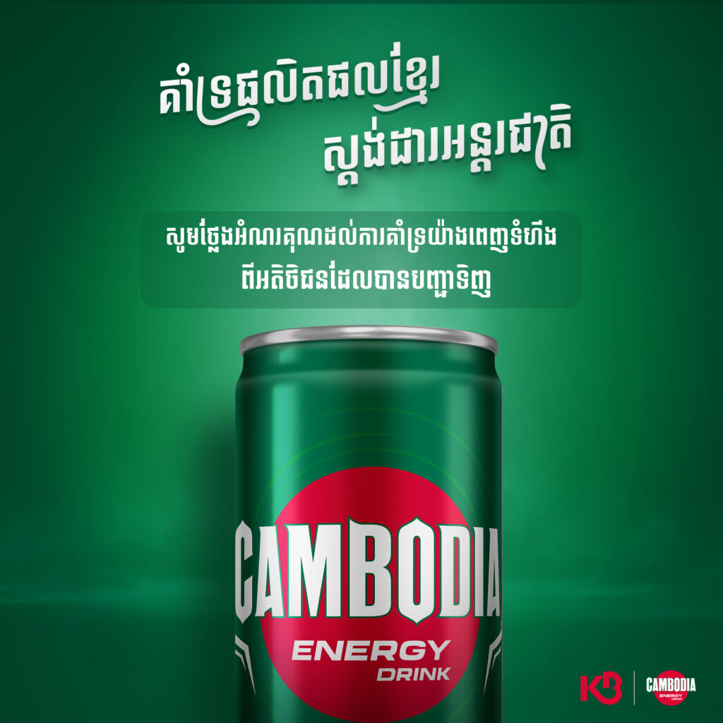 ផលិតផលខ្មែរថ្មី «ភេសជ្ជៈប៉ូវកម្លាំង កម្ពុជា» ត្រូវបានបង្កើតឡើងស្របតាមតម្រូវការបងប្អូនខ្មែរដើម្បីផ្តល់ថាមពល កម្លាំង រសជាតិឆ្ងាញ់ ក្លិនឈ្ងុយ ផ្សំឡើងពីតូរីន, វីតាមីន B3, B5, B6, B12 ជំនួយខួរក្បាល និងបង្កើនថាមពលខ្លាំងក្លា ឆ្ពោះទៅរកភាពជោគជ័យ។ លើសពីនេះ ភេសជ្ជៈប៉ូវកម្លាំង កម្ពុជា ក៏ផ្តល់ឱកាសឈ្នះរង្វាន់ដូចជា៖ រថយន្ត FORD PICK UP RANGER (XL) ស៊េរីថ្មី, រង្វាន់ទឹកប្រាក់ ៧៧៧ ដុល្លារ, និងរង្វាន់ទឹកប្រាក់ជាច្រើនទៀត។ ភេសជ្ជៈប៉ូវកម្លាំង កម្ពុជា! ផលិតផលខ្មែរ កម្លាំងខ្មែរ!ស្តង់ដារអន្តរជាតិ!