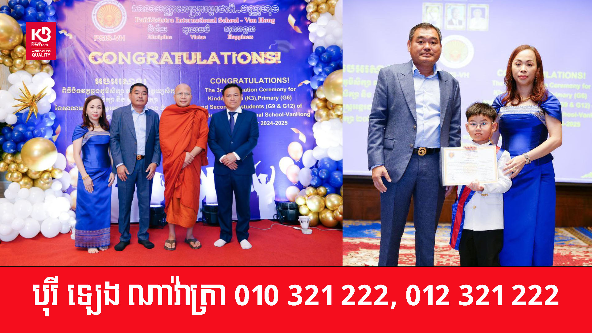 វាជាព្រឹត្តិការលើកទី៣ សម្រាប់សាលាបញ្ញាសាស្រ្តអន្តរជាតិវណ្ណ ហុង ក្នុងការរៀបចំពិធីបិទវគ្គ ឆ្លងភូមិសិក្សា នាថ្ងៃទី26 ខែសីហា ឆ្នាំ២០២៥ នៅអគារ ATHINA នៃ សាល PH GRAND HALL ក្នុងបុរីប៉េង ហួត បឹងស្នោ ដោយមានកិត្តិយសដែលមានការចូលរួមក្រោមអធិបតី ភាពលោកតាបណ្ឌិតកុល ផេង បិតាស្ថាបនិកនៃសាកលវិទ្យាល័យបញ្ញាសាស្ត្រ និងសាលា បញ្ញាសាស្រ្តអន្តរជាតិ និង ឯកឧត្តមប្រធានក្រុមប្រឹក្សាភិបាល និងលោកជំទាវអគ្គនាយិកា គ ណៈគ្រប់គ្រង បុគ្គលិក លោកគ្រូ អ្នកគ្រូ មាតាបិតា និងភ្ញៀវកិត្តិយស តំណាងនាយកមកពី ស្ថាបនអប់រំ អាណាព្យាបាល និងសិស្សានុសិស្សដែលបានបញ្ចប់ និងឆ្លងភូមិសិក្សាដោយ ជោគជ័យចំនួនសរុបជាង៥០០នាក់។