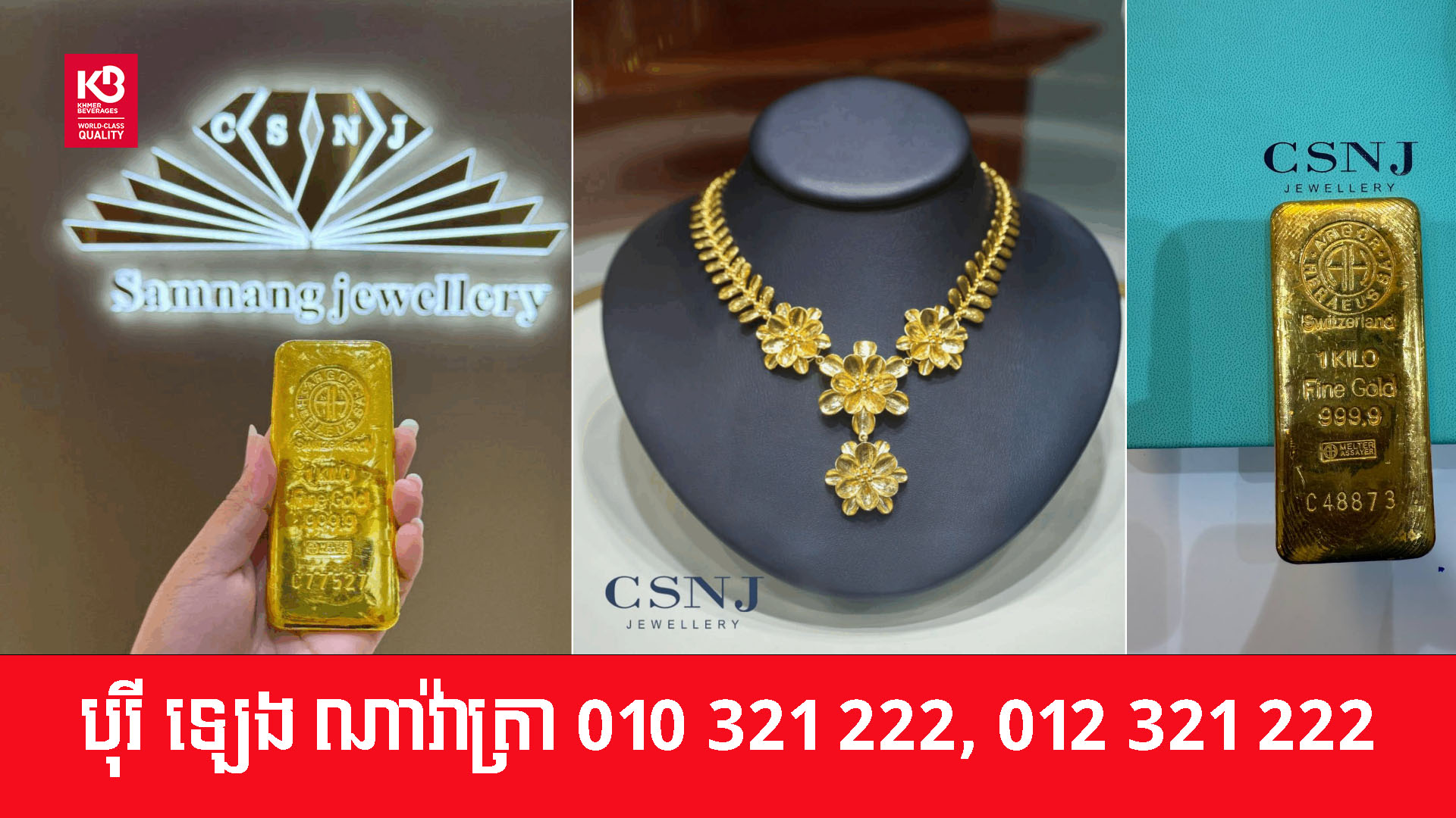 ហាងមាសពេជ្រ CSNJ មានលក់មាសពេជ្រជាច្រើនជម្រើស មានលក់ទាំងប្រភេទខ្សែកអ៊ីតាលី មាសគីឡូដុំ ត្បូងមានតម្លៃរបស់ខ្មែរគ្រប់ប្រភេទ។ ហាងនេះ មានអាស័យដ្ឋាននៅផ្ទះលេខ 39B&39C មហាវិថីអ្នកឧញ៉ាមហាភកី្តសប្បុរសភោគាធិបតី ហ៊ុននាង សង្កាត់ចាក់អង្រែក្រោម ខណ្ឌមានជ័យ រាជធានីភំ្នពេញ៕