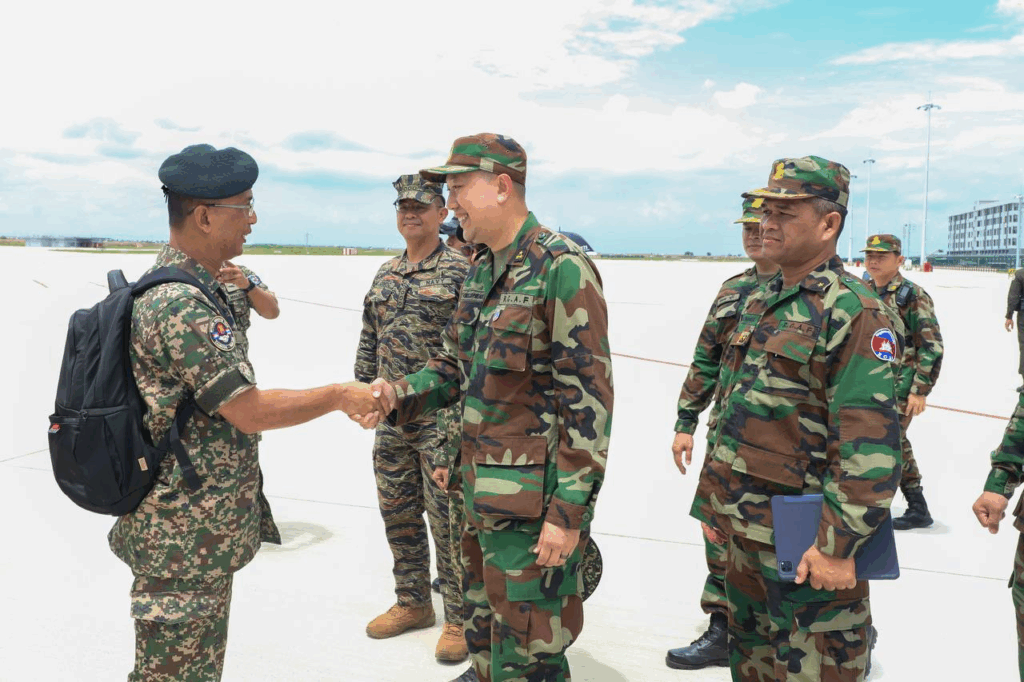 នៅរសៀលថ្ងៃពុធ ទី១០ ខែកញ្ញា ឆ្នាំ២០២៥ ក្រសួងការពារជាតិ បានសម្របសម្រួលទទួលដំណើរអញ្ជើញដល់របស់ក្រុមអ្នកសង្កេតកាណ៍អន្តរកាល (IOT) ដឹកនាំដោយ ឧត្តមសេនីយ៍ត្រី Dato’ Pahlawan Asri bin Shukor នាយក នាយកដ្ឋានបណ្តុះបណ្តាល នៃបញ្ជាការដ្ឋានកងទ័ពជើងគោកម៉ាឡេស៊ី និងជាប្រធានបេសកកម្ម IOT (HOM) និងតំណាងមកពីប្រទេសម៉ាឡេស៊ី ឥណ្ឌូនេស៊ី និងហ្វីលីពីន នៅអាកាសយាន្តដ្ឋានអន្តរជាតិតេជោ។