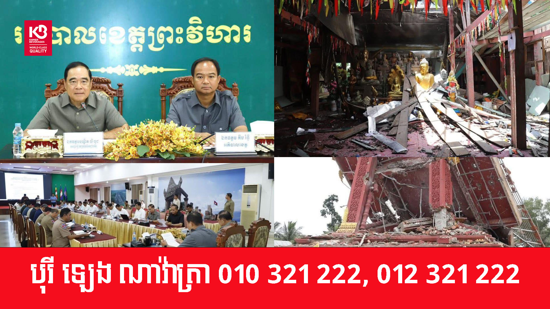 លោកទេសរដ្ឋមន្រ្ដី បានសង្កត់ធ្ងន់ថា អាជ្ញាធរមីន រួមជាមួយរដ្ឋបាលខេត្តព្រះវិហារ សហការជាមួយប្រតិបត្តិករជាតិអង្គភាពស៊ីម៉ាក់ ត្រៀមខ្លួចរួចជាស្រេច ក្នុងការដោះស្រាយ និងបោសសម្អាតយុទ្ធភណគ្រឿងផ្ទុះបន្សល់ទុកពីសំណាក់យោធាថៃស្របតាមតម្រូវការចាំបាច់ ដើម្បីកសាងនិងស្តារឡើងវិញនូវសហគមន៍មូលដ្ឋាន និងសេចក្តីថ្លៃថ្នូររបស់ប្រជាពលរដ្ឋ។