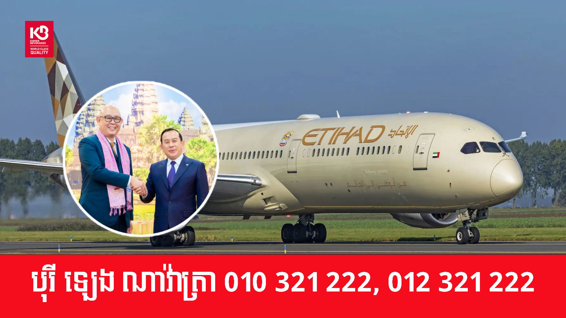 ក្រុមហ៊ុនអាកាសចរណ៍ Etihad Airways ជាក្រុមហ៊ុនអាកាសចរណ៍ដ៏ធំលំដាប់ទី២ នៃប្រទេសអេមីរ៉ាតអារ៉ាប់រួម នឹងចាប់ផ្តើមហោះហេីរត្រង់ពីទីក្រុង អាប៊ុយដាប៊ី(Abu Dhabi) នៃប្រទេសអារ៉ាប់រួម មកកាន់រាជធានីភ្នំពេញ ប្រទេសកម្ពុជា ចាប់ពីថ្ងៃទី៣ ខែតុលា ឆ្នាំ២០២៥ខាងមុខ។
