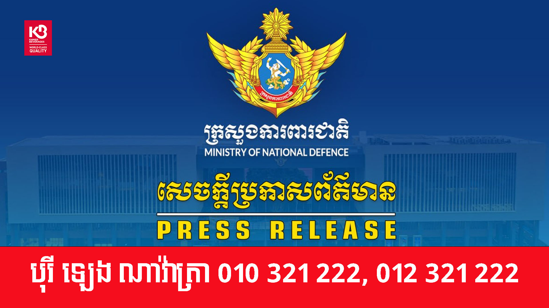 ក្រសួងការពារជាតិ បានគូសបញ្ជាក់ថា កម្ពុជាមិនបានបង្ហោះដ្រូនចូលដែនអធិបតេយ្យភាពថៃដូចការចោទប្រកាន់ដែលគ្មានការពិតនេះឡើយ និងសូមស្នើភាគីថៃប្រកាន់ខ្ជាប់នូវគោលការណ៍ដែលភាគីកម្ពុជាថៃបានឯកភាពគ្នាចៀសវាងការចែកចាយព័ត៌មានមិនពិត ឬព័ត៌មានក្លែងក្លាយដើម្បីកាត់បន្ថយភាពតានតឹង កាត់បន្ថយសាធារណមតិអវិជ្ជមាន និងលើកកម្ពស់បរិយាកាសអំណោយផលសម្រាប់កិច្ចសន្ទនាដោយសន្តិវិធីដែលជាចំណែកមួយក្នុងការអនុវត្តបទឈប់បាញ់ឱ្យបានពេញលេញ មានប្រសិទ្ធភាព និងការត្រឡប់មកប្រក្រតីភាពឡើងវិញ។