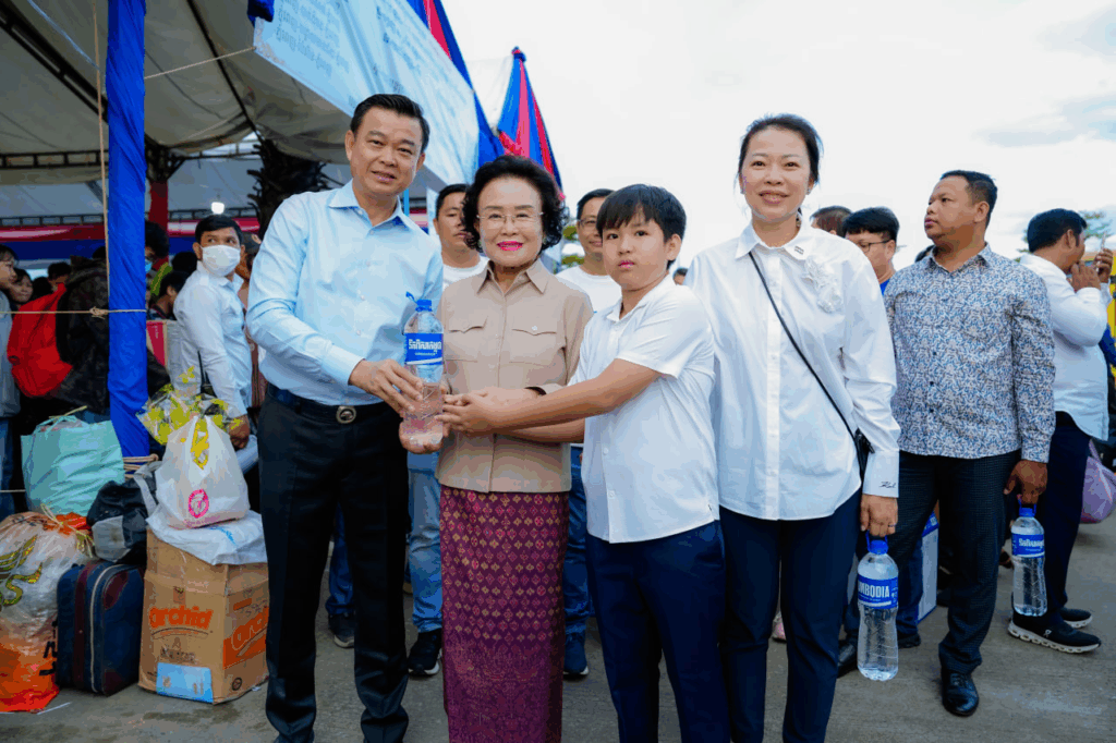 យកចិត្តទុកដាក់បងប្អូនជនរួមជាតិទៅលេងស្រុកកំណើតរដូវភ្ជុំបិណ្ឌ ថ្នាក់ដឹកនាំកំពូល ជីប ម៉ុង ចែកទឹកពិសាកម្ពុជាចំណុះ 1.5L ៨០,០០០ ដប ឥតគិតថ្លៃ