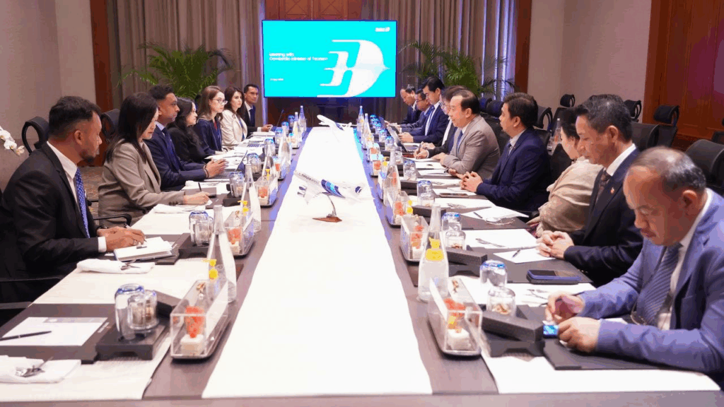 ការស្នើបែបនេះរបស់លោករដ្ឋមន្រ្តី ក្នុងជំនួបពិភាក្សាការងារជាមួយលោក Dersenish Aresandiran តំណាងក្រុមហ៊ុនអាកាសចរណ៍ Malaysia Airlines នាឱកាសនៃកិច្ចប្រជុំចង្អៀតរដ្ឋមន្ត្រីទេសចរណ៍អាស៊ានដែលប្រព្រឹត្តទៅនៅទីក្រុងម៉ាឡាកា ប្រទេសម៉ាឡេស៊ី កាលពីថ្ងៃទី៣០ ខែកញ្ញា ឆ្នាំ២០២៥។