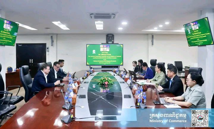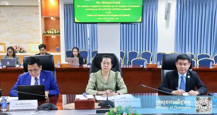 កាលពីថ្ងៃទី១៤ ខែតុលា ឆ្នាំ២០២៥ លោកស្រី តឹករ៉េត កំរង រដ្ឋលេខាធិការក្រសួងពាណិជ្ជកម្ម បានជួបពិភាក្សាការងារជាមួយ លោក Michael Friedl ទីប្រឹក្សាពាណិជ្ជកម្មប្រទេសអូទ្រីស និងជាប្រធាន ADVANTAGE AUSTRIA ប្រចាំកម្ពុជា ដើម្បីបន្តពង្រឹងនិងពង្រីកកិច្ចសហប្រតិបត្តិការពាណិជ្ជកម្មរវាងប្រទេសកម្ពុជា និងអូទ្រីស។