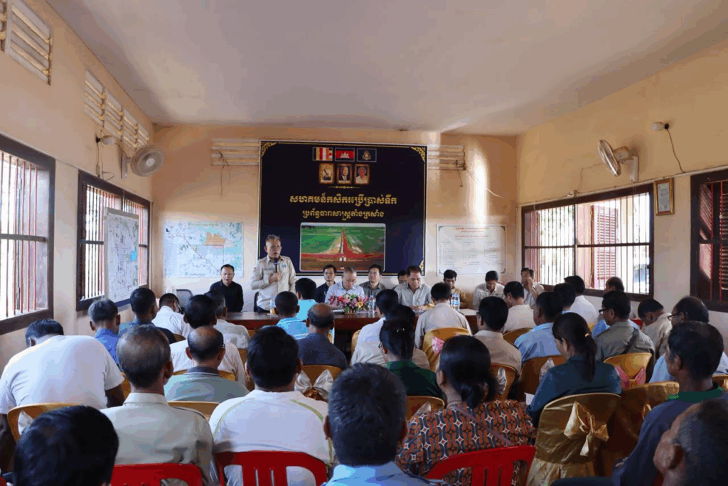 សហប្រធាន៣រូប នៃក្រុមការងារត្រី-វិស័យ មកពីក្រសួងចំនួន៣ រួមមាន លោក ហ៊ាន វណ្ណហន រដ្ឋលេខាធិការក្រសួងកសិកម្ម រុក្ខាប្រមាញ់ និងនេសាទ លោក អាន ពេជ្រហត្ថដា រដ្ឋលេខាធិការក្រសួងធនធានទឹក និងឧតុនិយម និងលោក អ៊ិន ចន្ថា រដ្ឋលេខាធិការក្រសួងអភិវឌ្ឍន៍ជនបទ បានដឹកនាំមន្រ្តីក្រុមលេខាធិការដ្ឋាន ជួបប្រជុំពិភាក្សាជាមួយប្រធាន អនុប្រធាន សមាជិកសមាជិកាសហគមន៍កសិករប្រើប្រាស់ទឹកប្រព័ន្ធធារាសាស្ត្រតាំងក្រសាំង នៅក្នុងឃុំកកោះ ស្រុកសន្ទុក ខេត្តកំពង់ធំ កាលពីថ្ងៃទី២០ ខែតុលា ឆ្នាំ២០២៥។