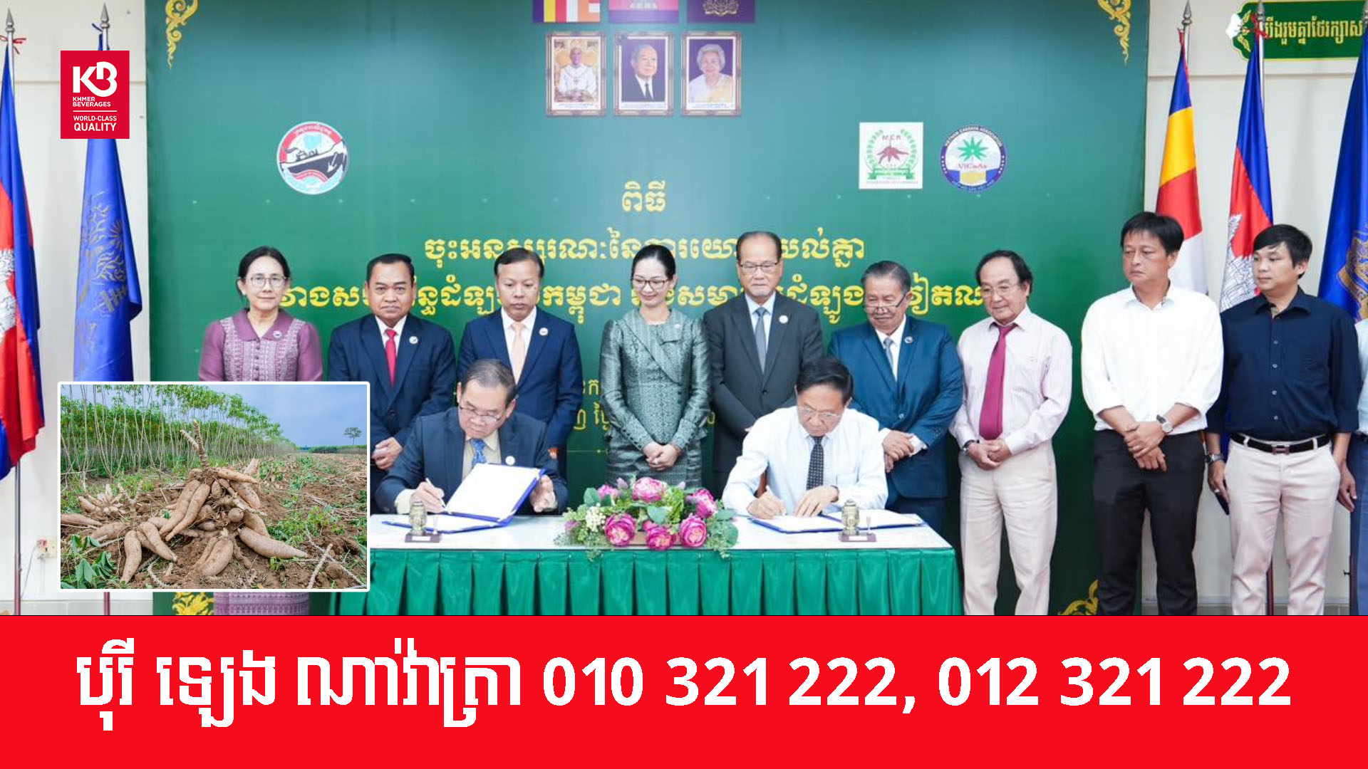 សូមញ្ជាក់ជូនថា នាឱកាសនោះ ក៏មានការចុះកិច្ចសន្យាទិញលក់រវាងក្រុមហ៊ុនប្រមូលទិញដំទ្បូងមីកម្ពុជា-វៀតណាមចំនួន៤ ដែលនឹងទទួលទិញដំឡូងមីស្រស់ពីកម្ពុជា ក្នុងរង្វង់ជាង៣លានតោនក្នុង១ឆ្នាំ ផងដែរ។