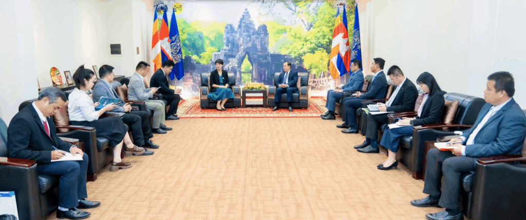 ការបង្ហាញពីគោលបំណងរបស់ក្រុមហ៊ុនខាងលើនៅក្នុងជំនួបពិភាក្សាការងាររវាង លោក ហួត ហាក់ រដ្ឋមន្រ្តីក្រសួងទេសចរណ៍ ជាមួយលោកស្រី Hu Heng ប្រធាននាយកដ្ឋានកិច្ចការបរទេស នៃក្រុមហ៊ុនសេដ្ឋកិច្ចអន្តរជាតិ និងកិច្ចសហប្រតិបត្តិការបច្ចេកទេស ដែលមានទីស្នាក់ការកណ្តាលនៅទីក្រុង Wu Han សាធារណរដ្ឋប្រជាមានិតចិន កាលពីថ្ងៃទី២៣ ខែតុលា ឆ្នាំ២០២៥។
