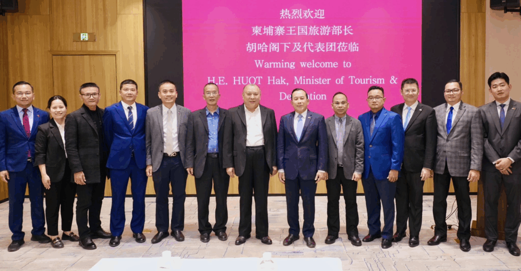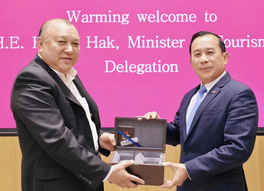 កាលពីថ្ងៃទី២៩ ខែតុលា ឆ្នាំ២០២៥ ក្នុងឱកាសចូលរួមព្រឹត្តិការណ៍ “ពិព័រណ៍វប្បធម៌ និងឧស្សាហកម្មការរចនាបែបច្នៃប្រឌិតស៊ូចូវ លើកទី១៤” និង “ពិធីបុណ្យកម្ពុជា” នៅទីក្រុងស៊ូចូវ ខេត្តជាំងស៊ូ លោក ហួត ហាក់ រដ្ឋមន្ត្រីក្រសួងទេសចរណ៍ បានអនុញ្ញាតជូនលោក MA Tieqiao ប្រធានក្រុមប្រឹក្សាភិបាលក្រុមហ៊ុន Guilin Junda Transporation Co., Ltd. និងសហការី ចូលជួបពិភាក្សាការងារ និងរាយការណ៍ជូនអំពីលទ្ធផលនៃការចុះពិនិត្យសិក្សាផ្ទាល់លើគម្រោងអភិវឌ្ឍន៍ស្ទឹងសៀមរាបកាលពីខែកញ្ញា ឆ្នាំ២០២៥ កន្លងមក។