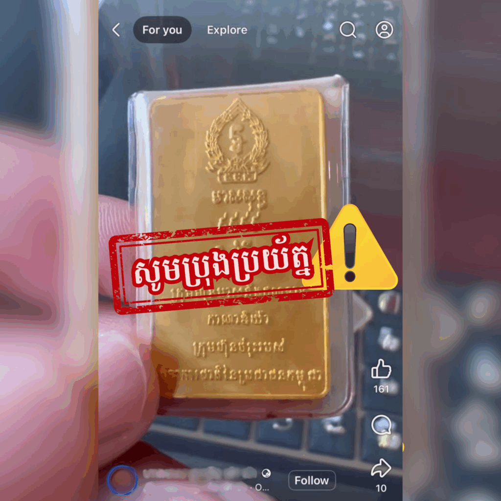 យោងតាមសេចក្ដីបំភ្លឺព័ត៌មាននេះ ធនាគារជាតិនៃកម្ពុជា បានឱ្យដឹងថា នាពេលថ្មីៗនេះ មានការផ្សព្វផ្សាយនៅតាមបណ្តាញសង្គមហ្វេសប៊ុក អំពីវត្តមានមាសសន្លឹក ដែលមាននិមិត្តសញ្ញា (logo) របស់ធនាគារជាតិនៃកម្ពុជា និងមានភ្ជាប់ការអត្ថាធិប្បាយថាជាមាស ដែលចេញពី “ធនាគារខ្មែរពិតៗ”។